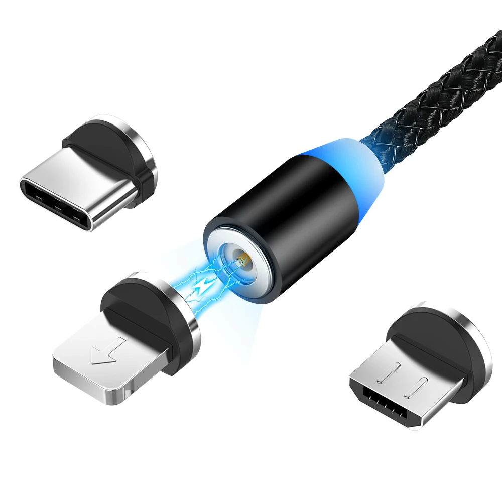 Магнитный кабель плетеный LED Type C Micro USB зарядный кабель для Iphone X 7 Магнитный шнур зарядного устройства для Samsung s9 шнур быстрой зарядки