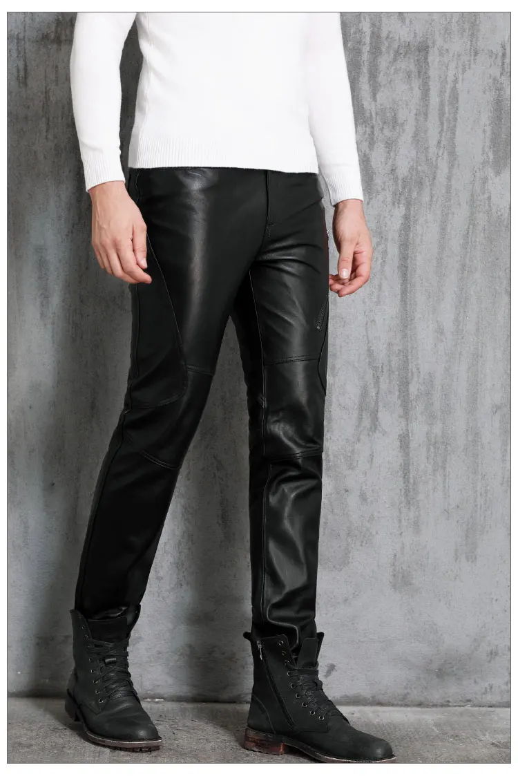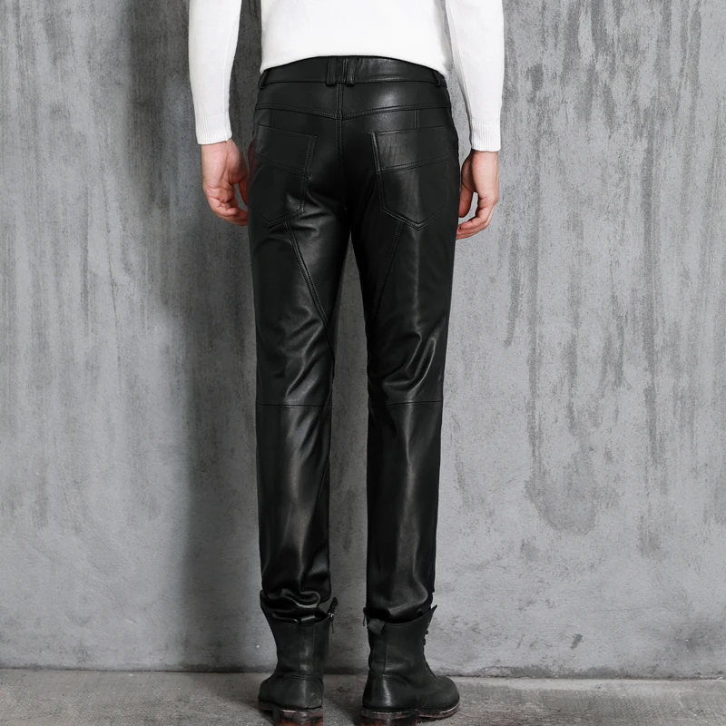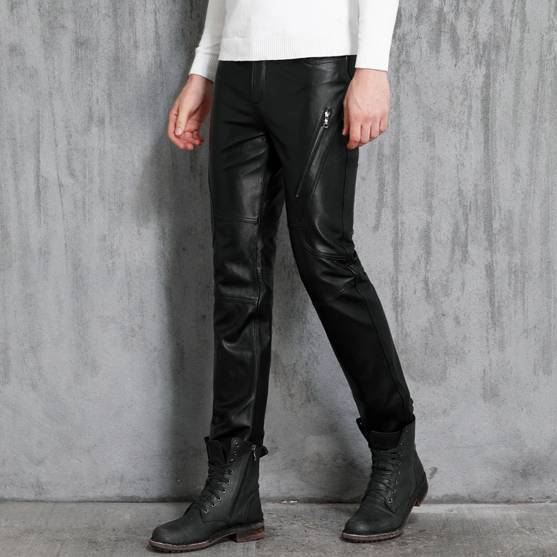 Брюки из натуральной кожи, мужские качественные черные мотоциклетные брюки, мужские индивидуальные кожаные брюки первого слоя