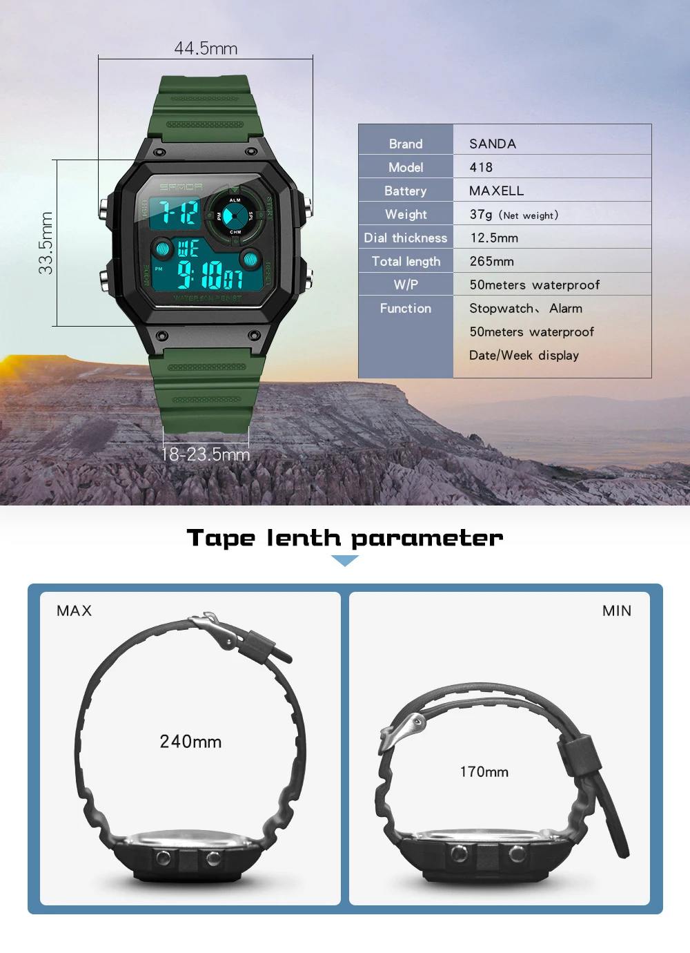 Часы мужские цифровые, водонепроницаемые, в стиле милитари, 418