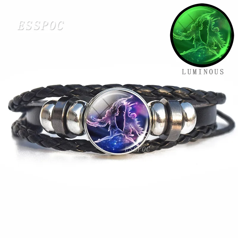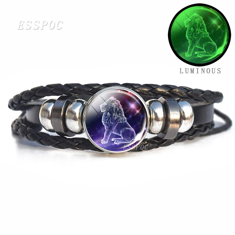Браслет с изящными подвесками 12 созвездий, стеклянный кабошон в стиле панк, ювелирное изделие, черный Многослойный кожаный браслет, подарок для женщин и мужчин
