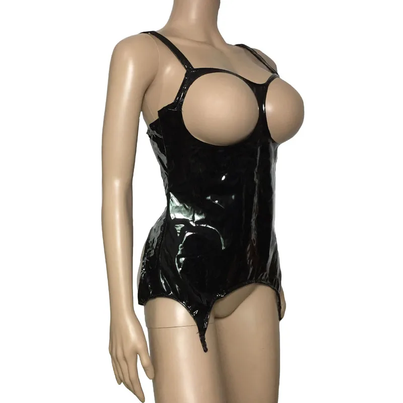 Женское белье из ПВХ, винила, без чашек, с подвязками, боди с поясом, костюм фетиш