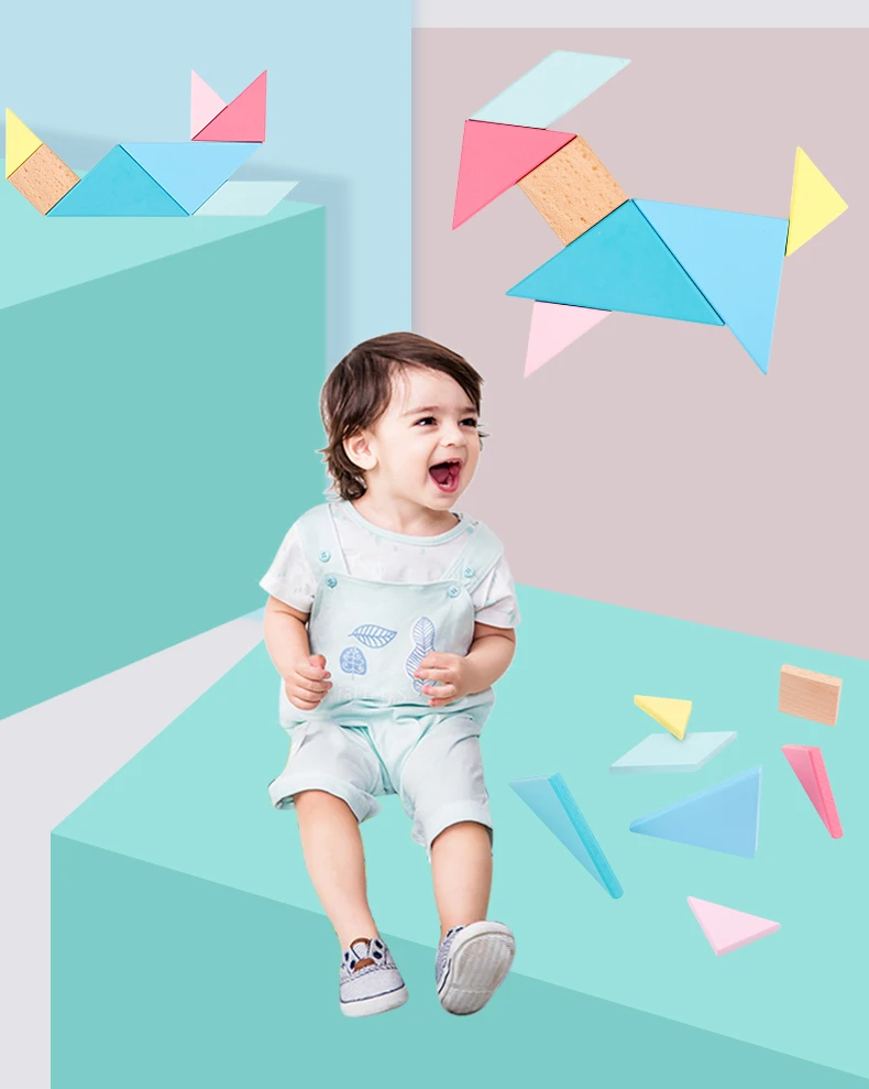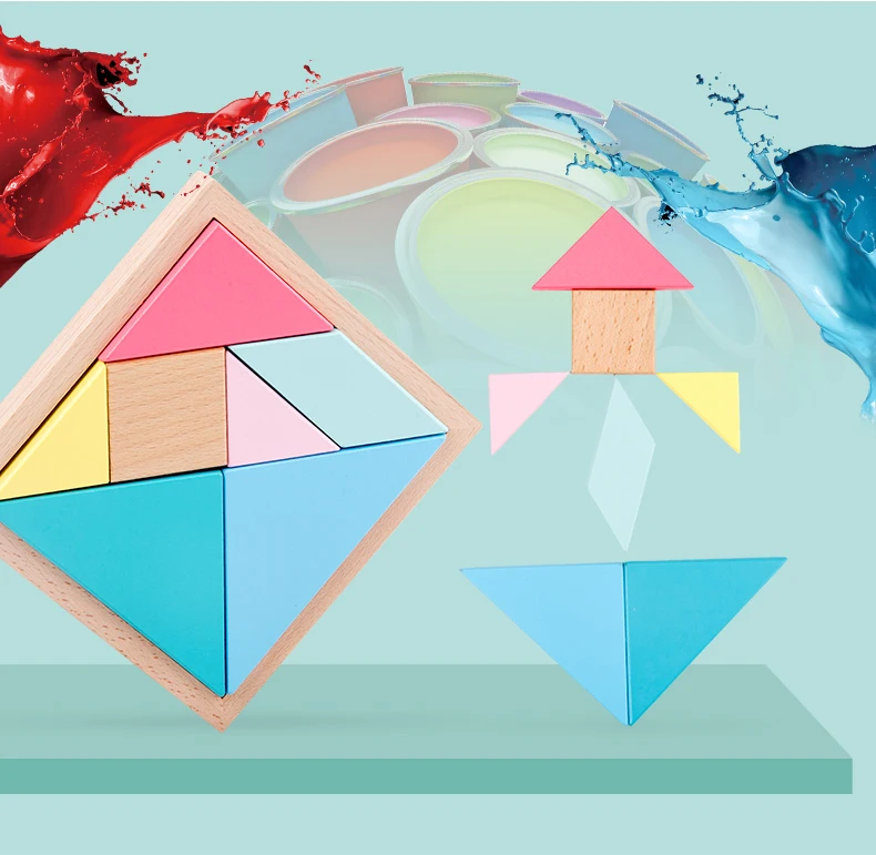 Развивающая деревянная геометрическая форма, красочная головоломка для раннего обучения по методике Монтессори, детские игрушки, танграмма, игра IQ для детей и взрослых