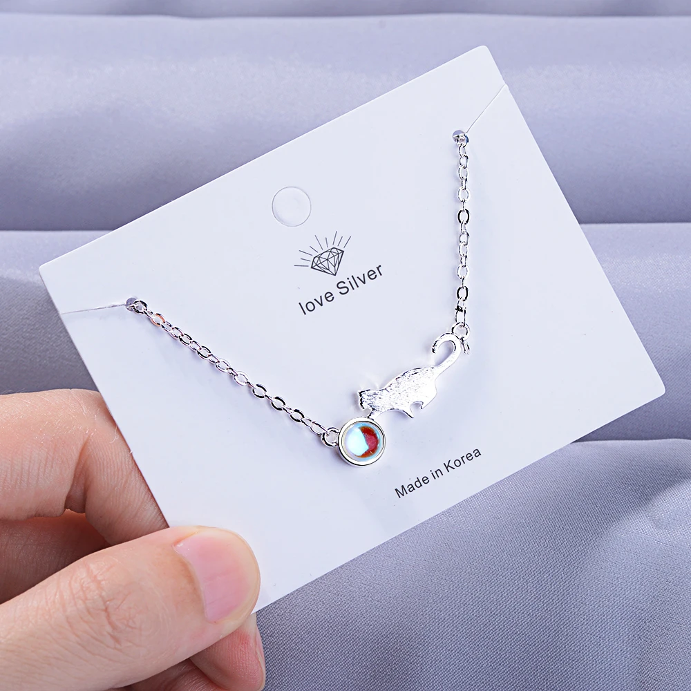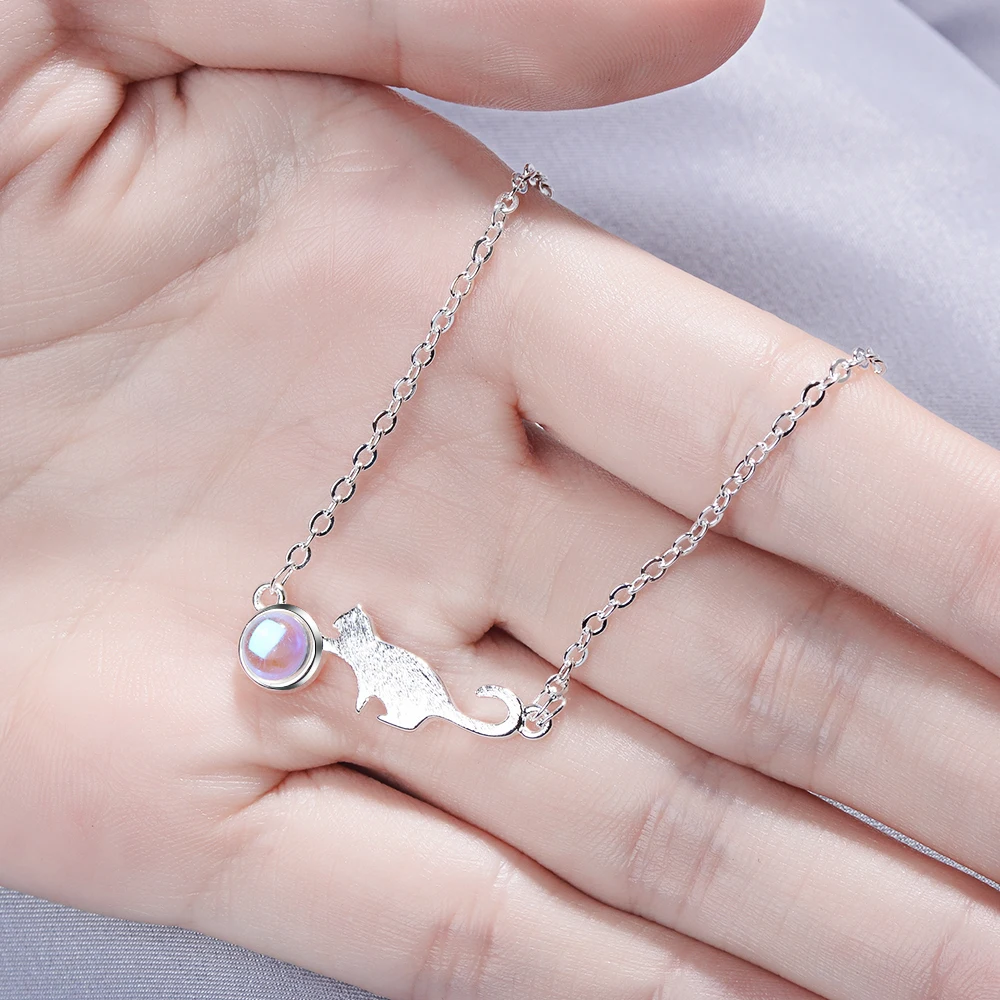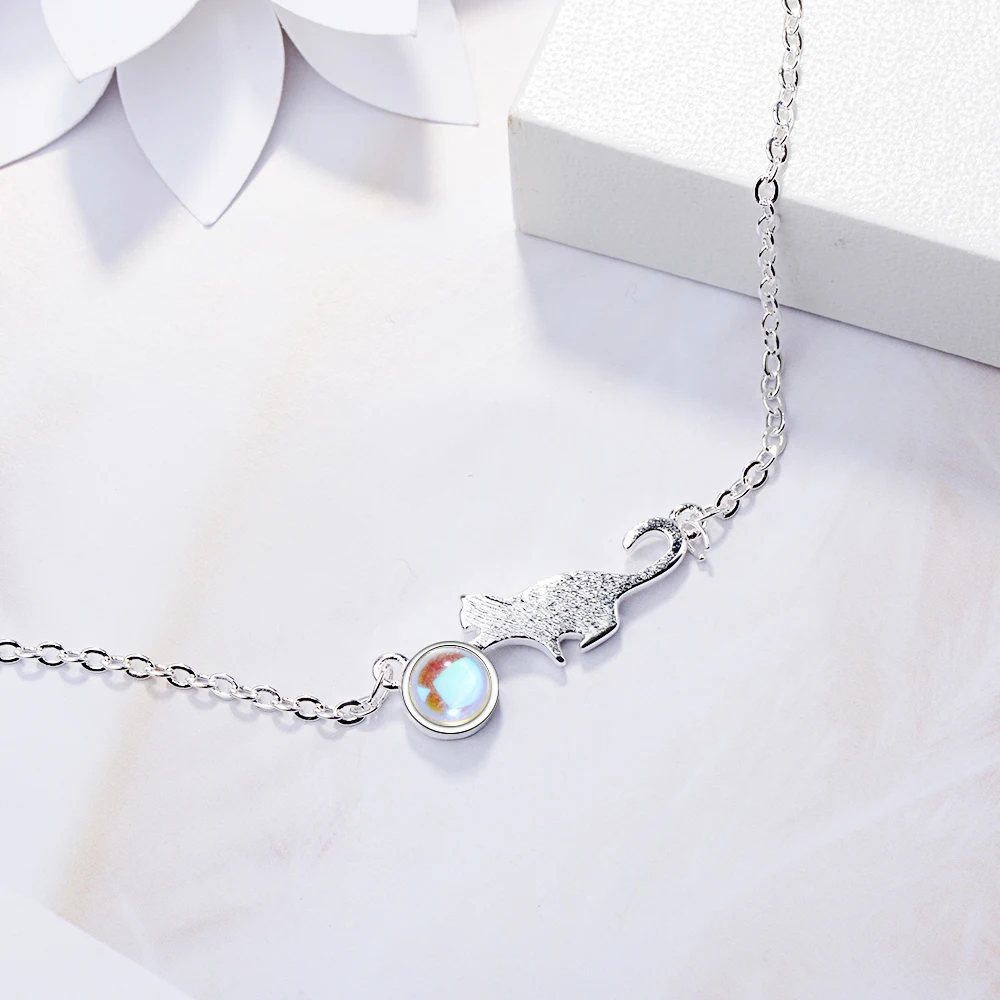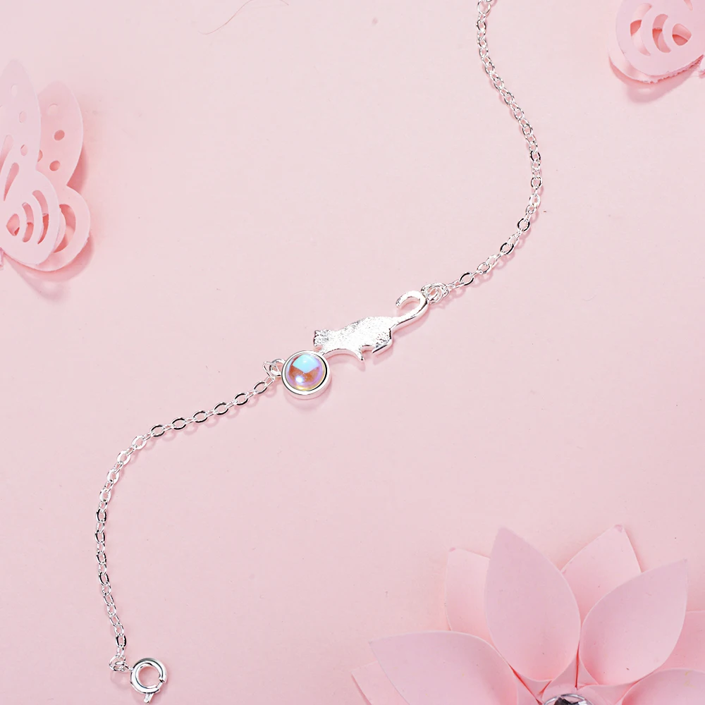 100% 925 пробы Серебряный лунный камень Кот очаровательные браслеты и браслеты для женщин креативные изящные ювелирные изделия