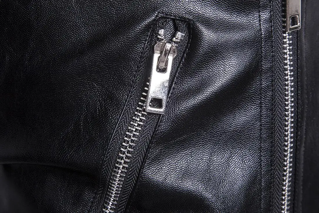 Мужская мотоциклетная кожаная куртка с ремнем на молнии, черная, из...