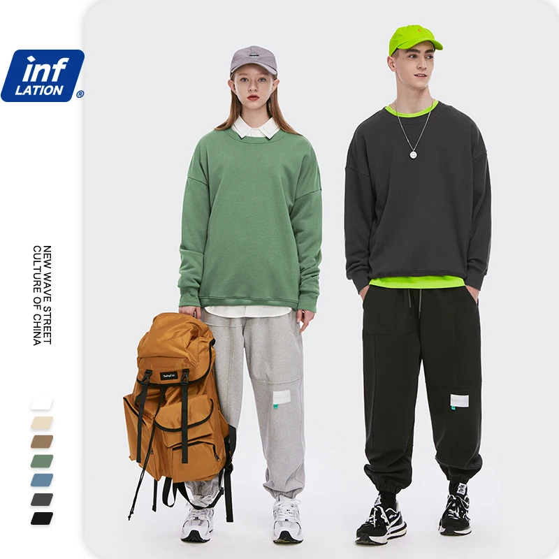 Надувная Мужская Базовые свитшоты 2020 AW o-образным вырезом хлопковые свитшоты 10 цветов мужские простые толстовки свитшоты 9603W