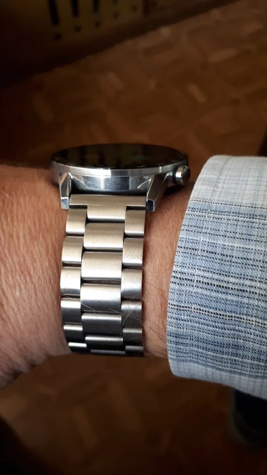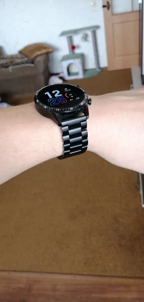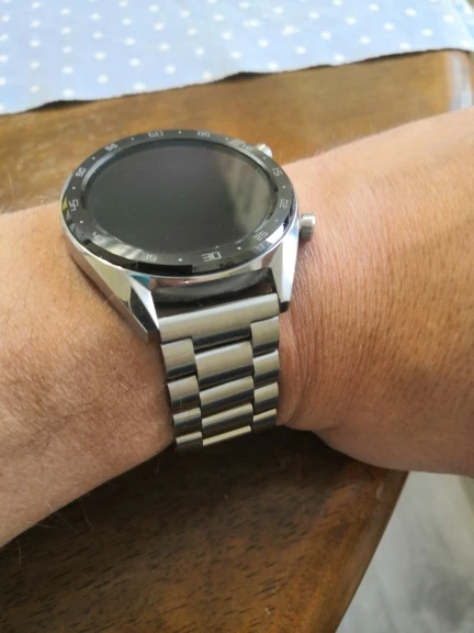 Товар прибыл довольно быстро, все в идеальном состоянии 2 контакта ремешок и инструмент для удаления звеньев на данный момент работает очень хорошо я надеюсь, что он не будет выгнут, чтобы потерять ремень там я оставлю больше отзывов, если что-то не подходит для теперь все хорошо рекомендовано, это придает мне больше стиля⌚(Умные часы Huawei Gt2 46 мм)
