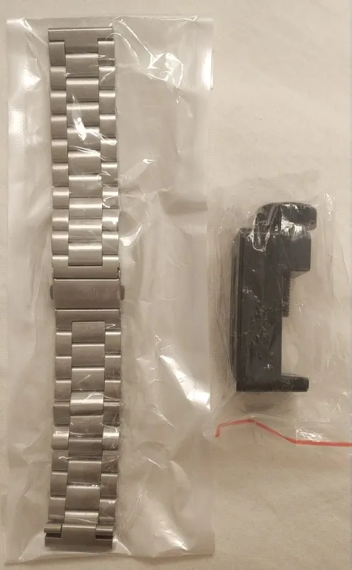 Доставка очень быстрая, прибыла менее 10 дней. Он также поставляется с небольшим кусочком для удаления и размещения звеньев и регулировки ремешка на размер вашего запястья, я рекомендую вам покупку.