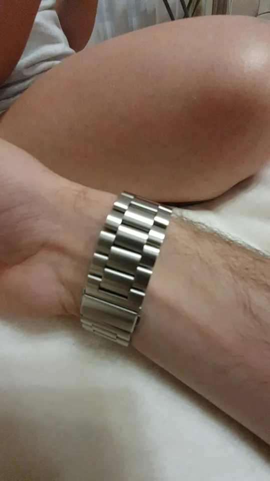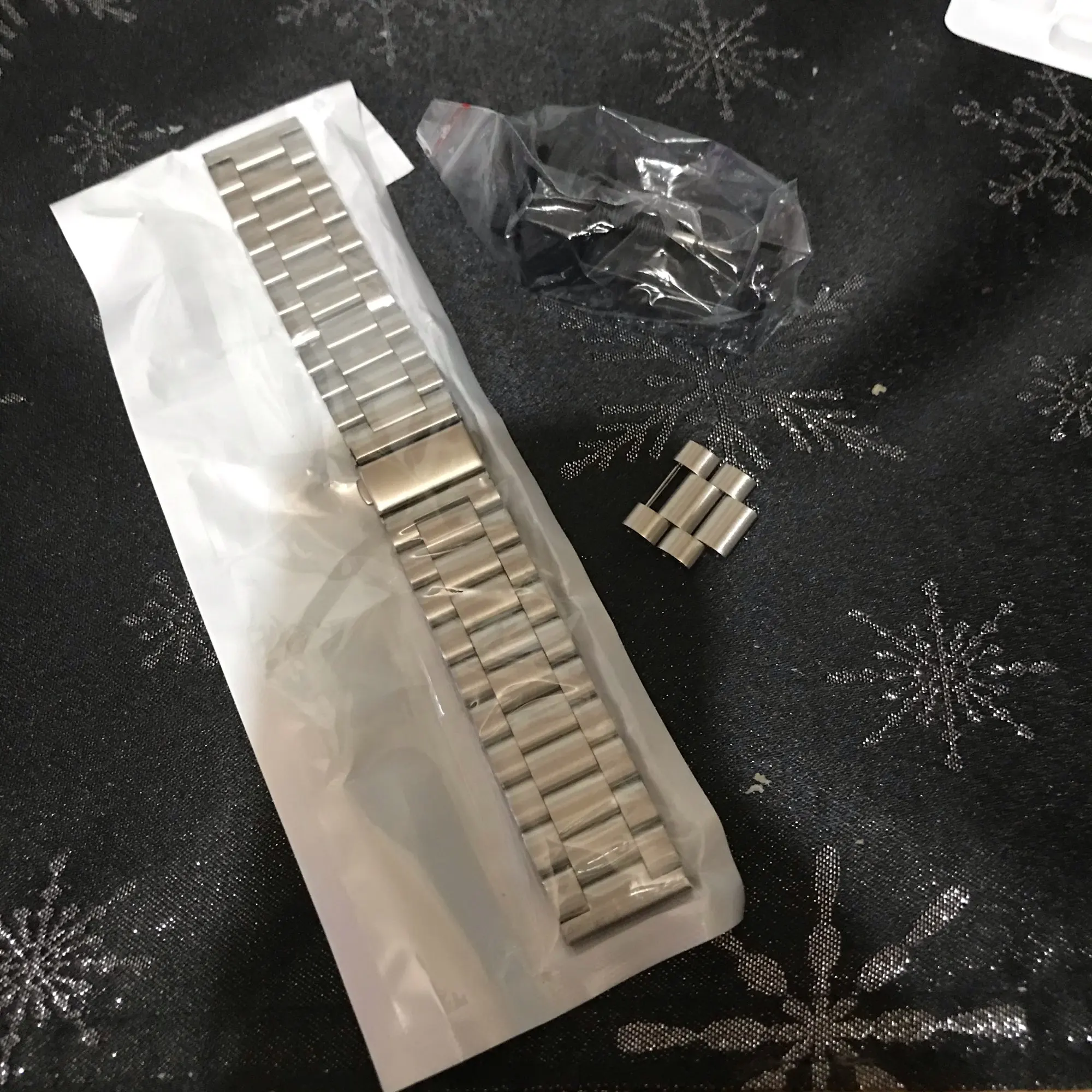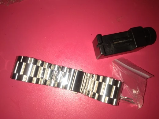 Ремешок хорошего качества, мне пришлось снять несколько звеньев, но он был идеальным. Я очень доволен покупкой.