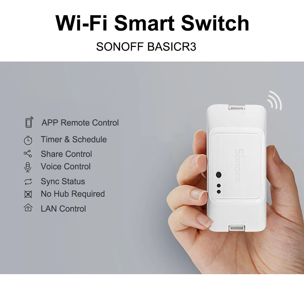 Примечание: у SONOFF BASICR3 нет модуля радиочастотного приемника 433 МГц. Если вы хотите умный переключатель diy с функцией RF, пожалуйста, купите SONOFF RFR3.Обзор:Это смарт-переключатель Wi-Fi с возможностью DIY, который позволяет управлять подключенными устройствами через eWeLink непосредственно с вашего телефона в любое время в любом месте, и он может предоставить вам удивительный опыт управления умным домом. Удивительно, что он имеет режим DIY, который является прошивкой, может быть определен пользователем. Встроенный веб-сервер, который предоставляет остальные API, что позволяет подключать коммутатор с существующей системой домашней автоматизации. Совместим с функцией IFTTT, и вы можете совершать больше действий для запуска других устройств или получать уведомление на вашем телефоне, как только действие было запущено. Share control позволяет управлять одним и тем же устройством вместе с семьей или друзьями, просто поделитесь им в приложении eWeLink, чтобы попробовать.Особенности:* Управление устройствами с телефона, в любом месте и в любое время.* Поддержка Amazon Alexa и Google Assistant для включения/выключения устройств.* Включите/выключите одно устройство или группы устройств.* Управляйте устройствами SONOFF с использованием поддерживаемых приложений и услуг IFTTT.* Режим DIY позволяет использовать остальные API для подключения SONOFF BASICR3 с вашей существующей системой домашней автоматизации.* Включите/Выключите устройство, когда нет доступа Wi-Fi в режиме локальной сети.* Поделитесь устройствами с семьей, чтобы управлять вместе.* Покажите статус в реальном времени в приложении eWeLink для устройств.* Можно подключить старый телефон, чтобы он контролировал и управлял устройствами.Характеристики:Модель: BASICR3Источник питания: 100-240 В переменного токаМаксимальный ток: 10AМаксимальная мощность: 2200 ВтБанда: 1Режим передачи: Wi-Fi связьБеспроводной Стандартный: 802,11 b/g/n, 2,4 ГГцРежим управления: мобильное приложениеПлатформа: для Android, iOSРасстояние управления: БесконечностьМатериал корпуса: PC V0Размер: 91*43*25 мм (Д * Ш * В)Посылка:4 * Переключатель SONOFF BASICR34 * набор крепежных винтов