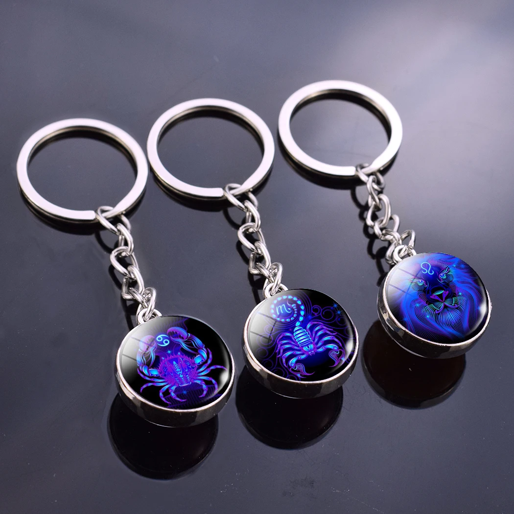 Брелок со светящимся стеклянным шаром, 12 брелок для ключей Созвездие, подарок на день рождения