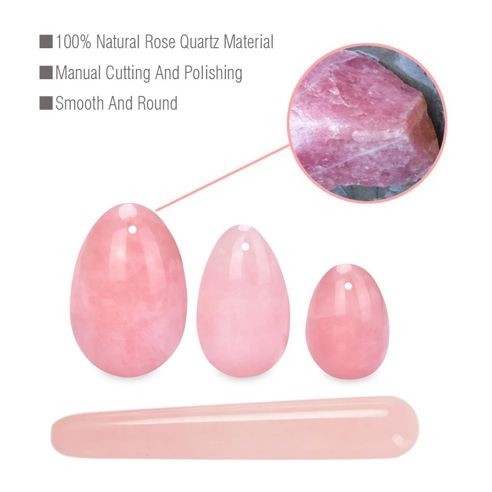 Женский тренажер Кегеля из натурального розового кварца Yoni, нефритовые яйца, Вагинальные мышцы, подтягивающие шарики, хрустальные кегелевые яйца, Прямая поставка