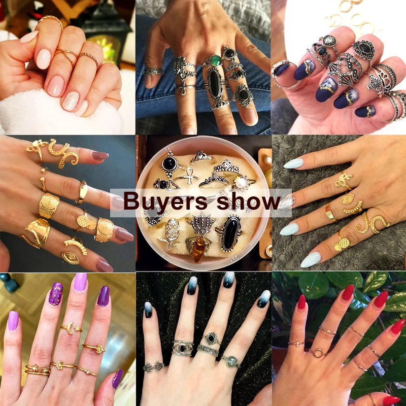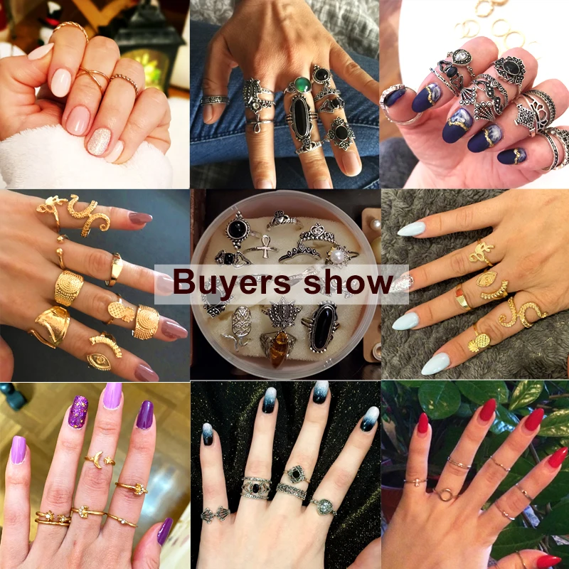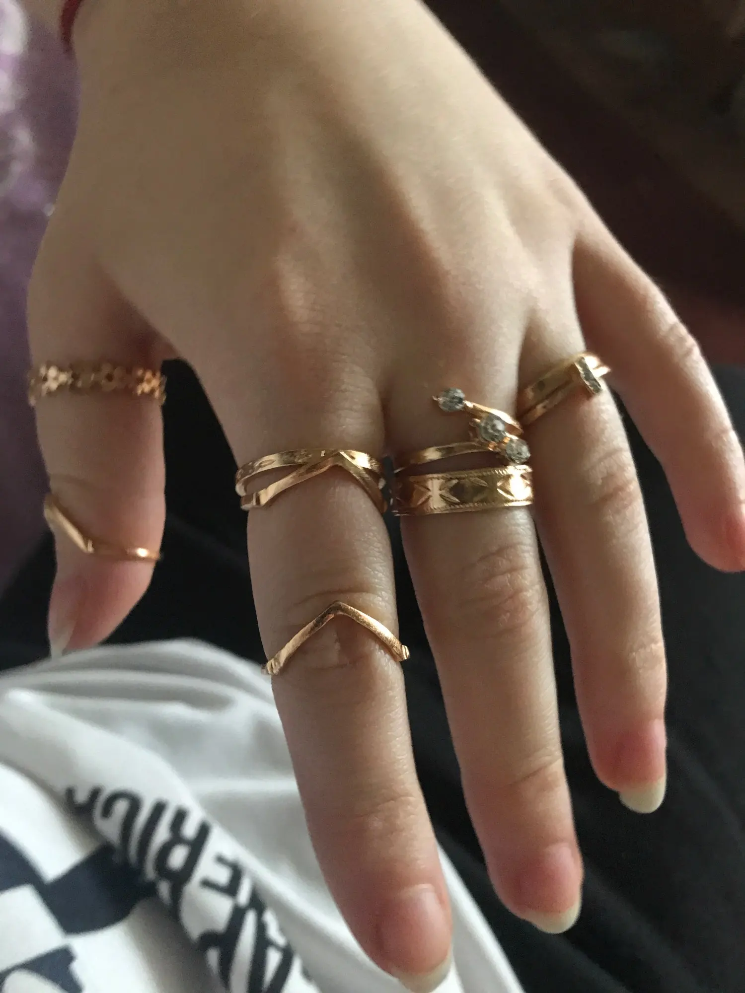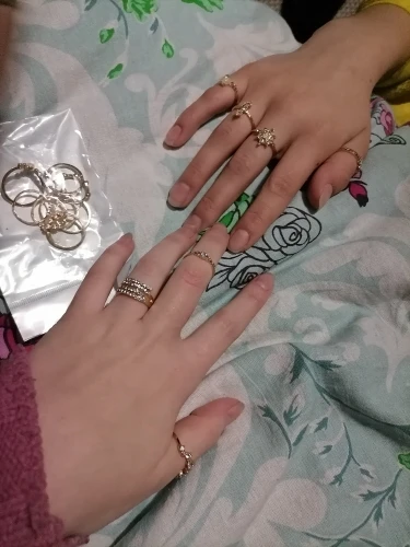 Пришли быстро, качество неплохое, красивые, не облазят вроде и не гнутся. Мне нравится, что почти нет камней. Но многие большеваты кольца. Размеры в основном 17, 17.5. Есть 16 и 16.5 - как мой. Но я всё-таки хотела носить на верхней части пальца, как на картинке. Из всех могу только парочку. Буду придумывать что-то.