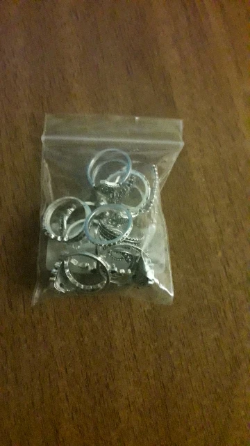 Именно то, что мне нужно. Качество не удивительно, но это хорошо для того, что вы получите. Некоторые кольца очень милые. Единственная вещь для меня в том, что мои пальцы действительно тонкие, поэтому много колец немного великоваты.