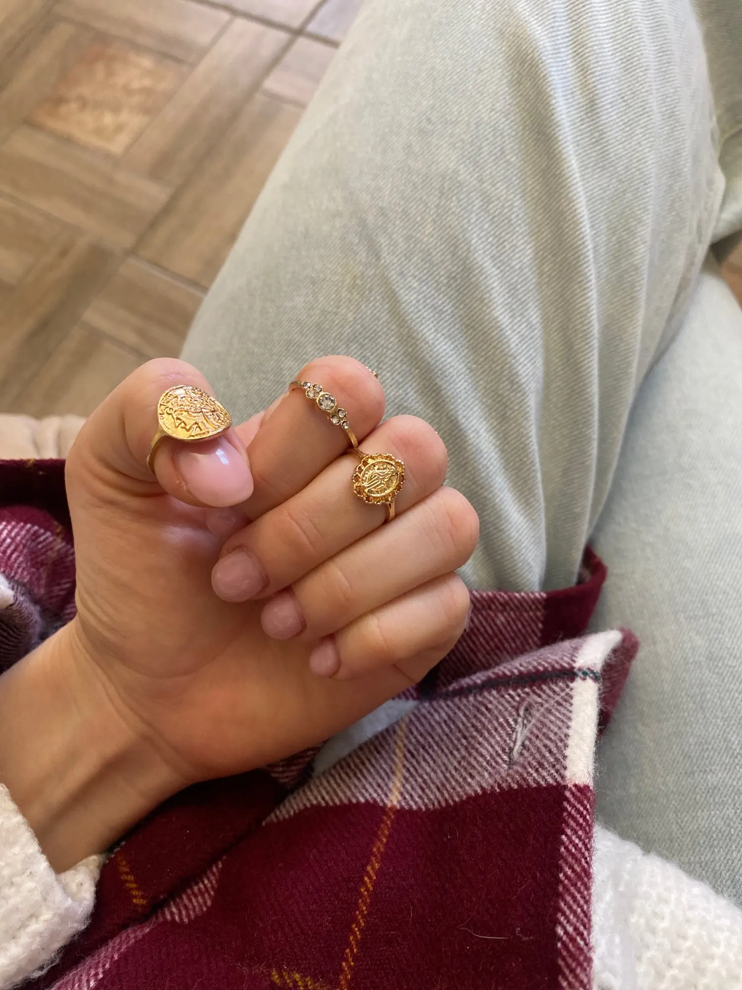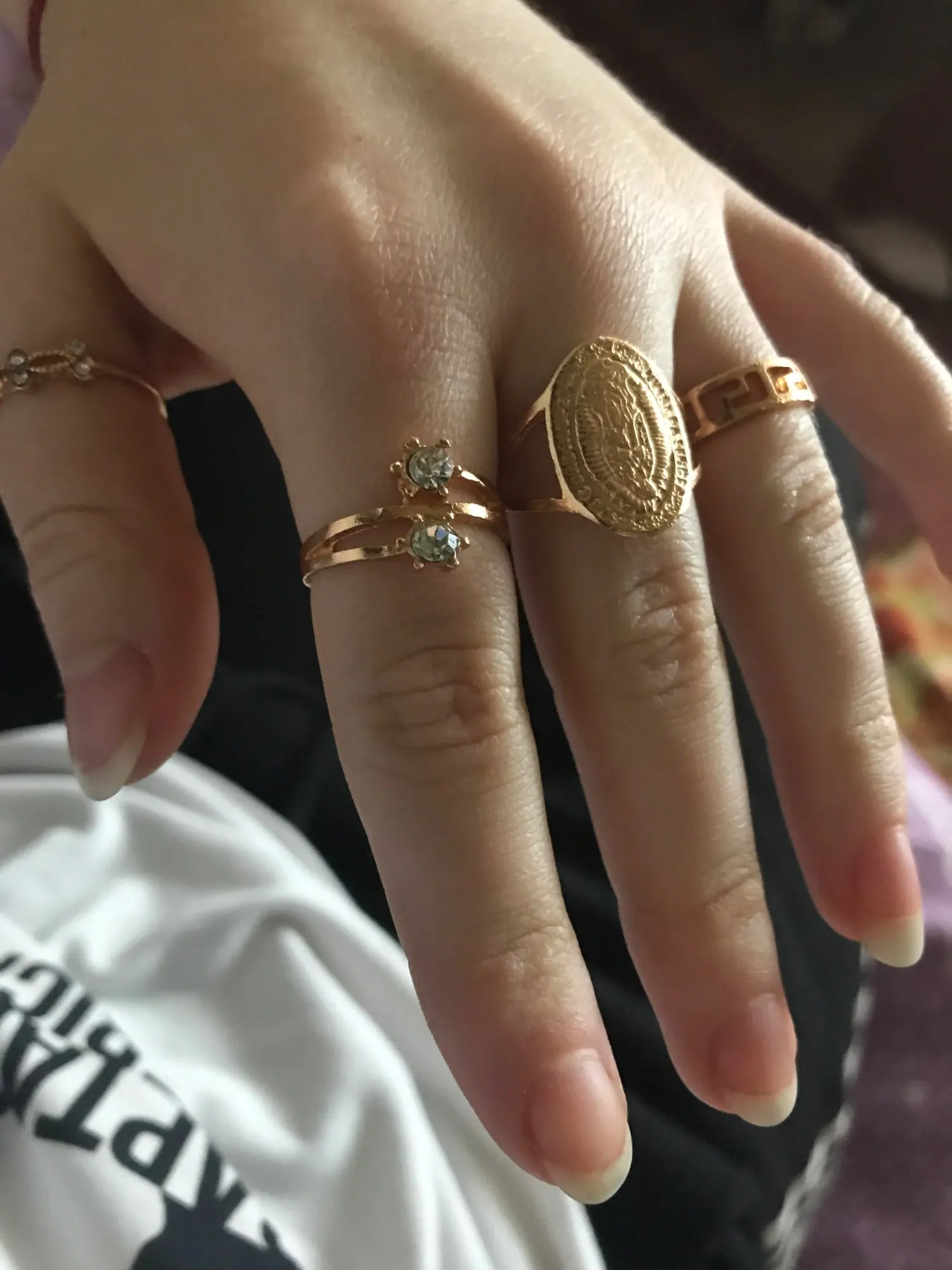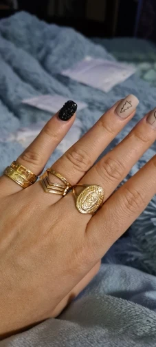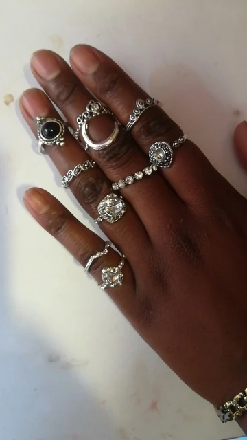этот набор однозначно топ, есть более крупные кольца, если и маленькие, которые идеально как фланговые или на мизинчик.бижутерия выглядит очень достойно, посмотрим как будет в носке (при мытье рук в кольце остаётся черный след на пальце)
