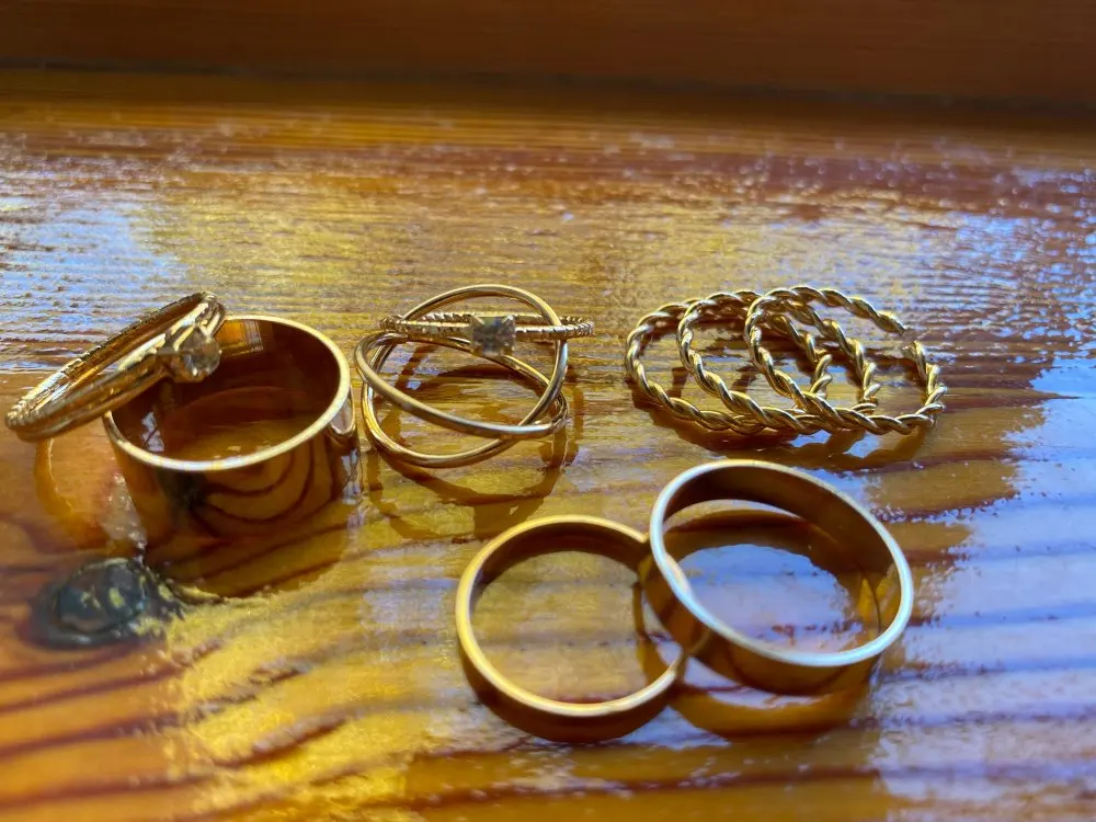 кольца красивые, немного красятся на коже, но это не так страшно за их низкую цену. этого стоило ожидать, меня всё устраивает.