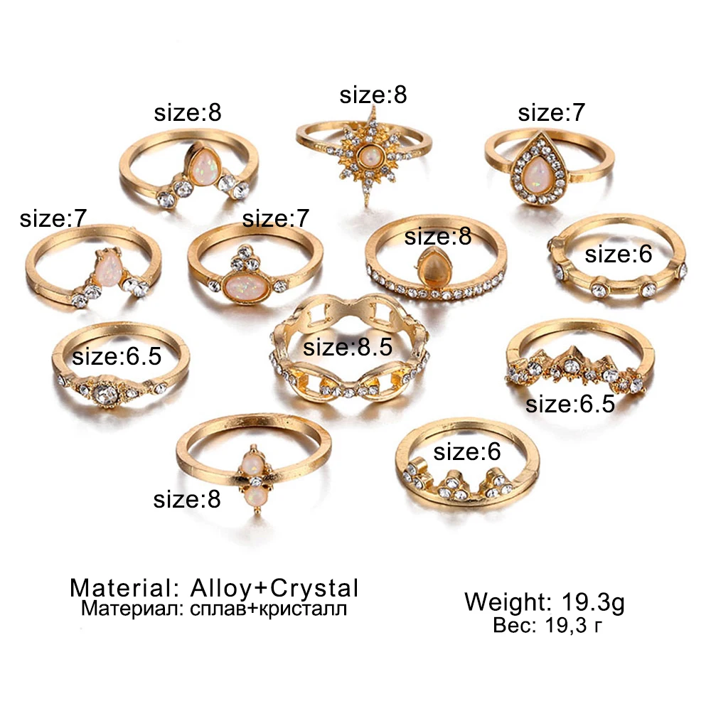 Набор женских обручальных колец FAMSHIN, 9 шт.компл., в стиле бохо, с золотыми звездами, луной, с опалом, обручальное кольцо с кристаллами, 2021, богемные ювелирные изделия, подарки