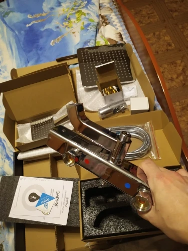 Пришло быстро, СДЭКом. Есть инструкция на русском, али-стайл - толку никакого, чисто поржать :) После сборки осталась одна прокладка. То ли запасная, то ли что-то пропустил. Установил, всё работает. Температура комфортная. Из особенностей - регулятор температуры фиксируется только в сторону увеличения, уменьшить можно без нажатия кнопки. Из минусов - нет чёткой фиксации переключателя верхний/нижний душ.