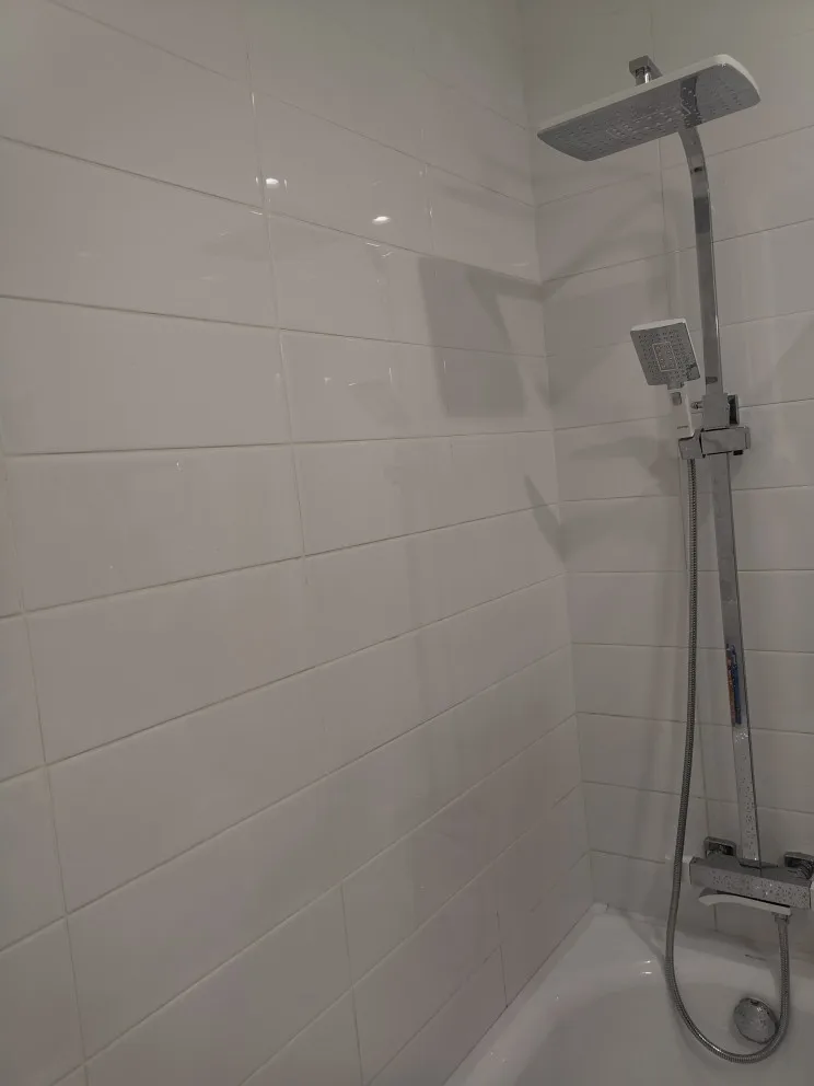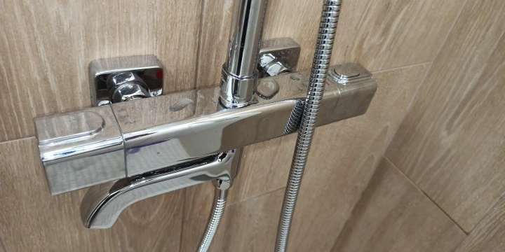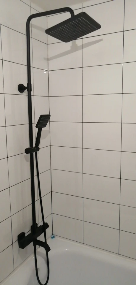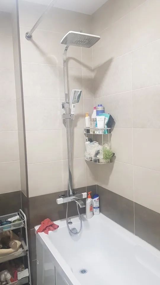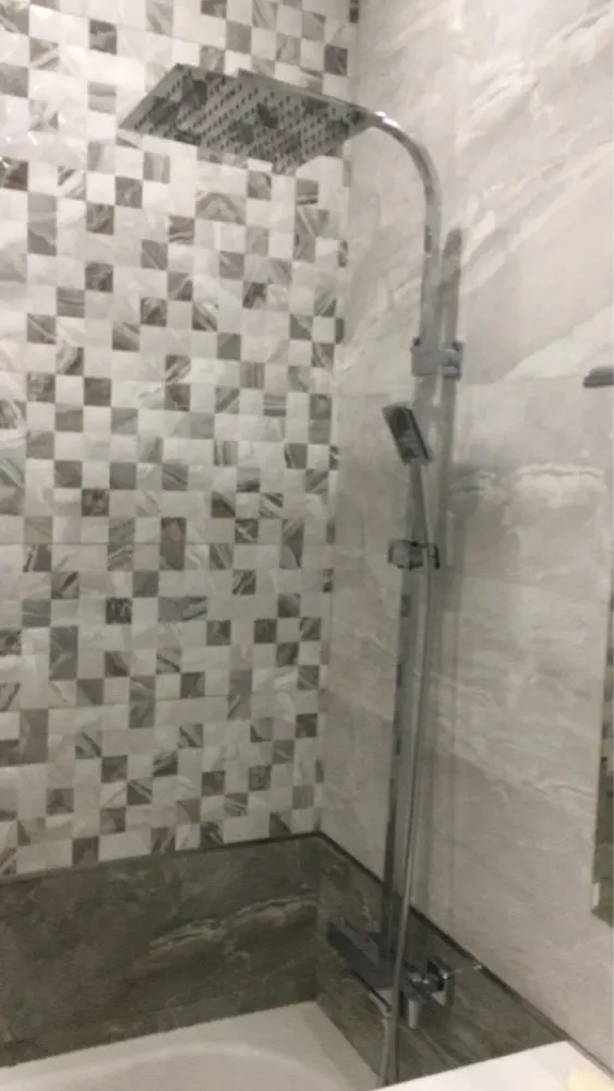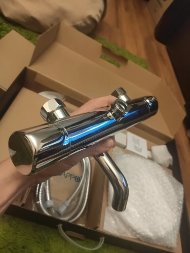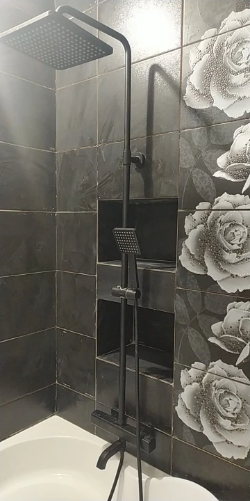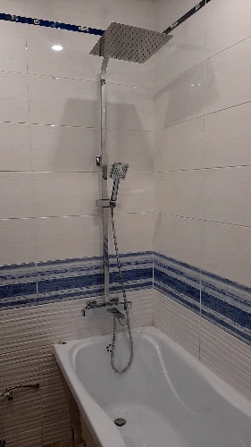 хороший термостат, интересное но не очень удобное переключение на малый душ с помощью поворота носика излива, попадает на край ванны. отверстия в душевых лейках не очень мелкие, не создаёт напора. У меня в тропическом душе была криво установлена уплотнительная резинка , тек на потолок, пока снимал верхний душ, чтобы понять в чем дело, ободрал краску, радует только что не видно, пересобрал шаровое соединение все стало нормально. За 9000 считаю отличный душ, посмотрим сколько отходит краска. доставка быстрая, до квартиры