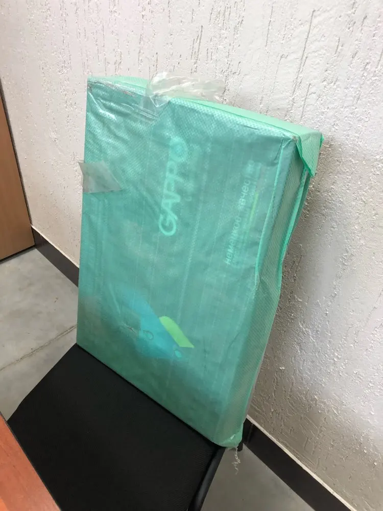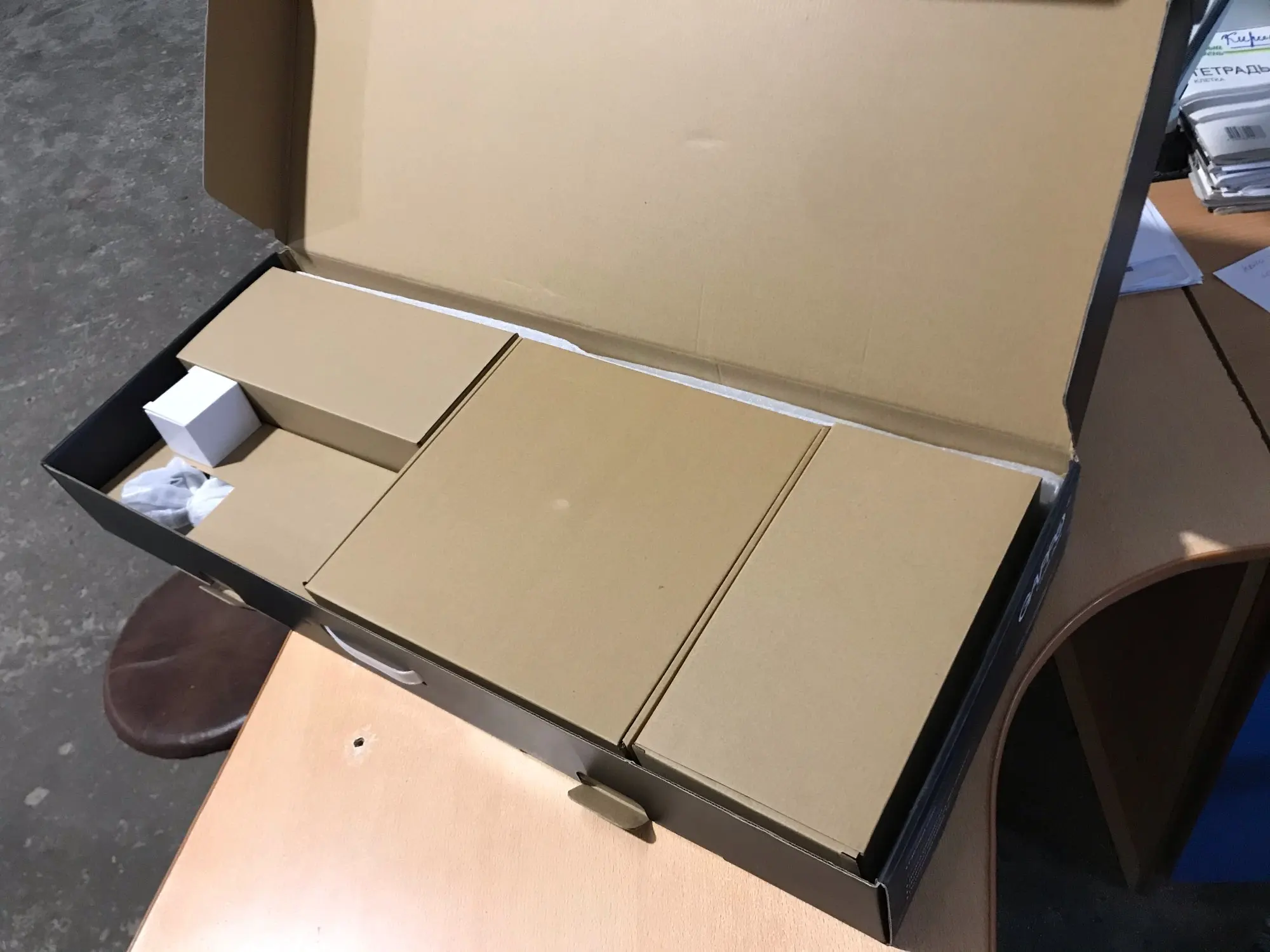 Пришло вместе с курьером к двери, внешне и визуально все соответствует описанию.