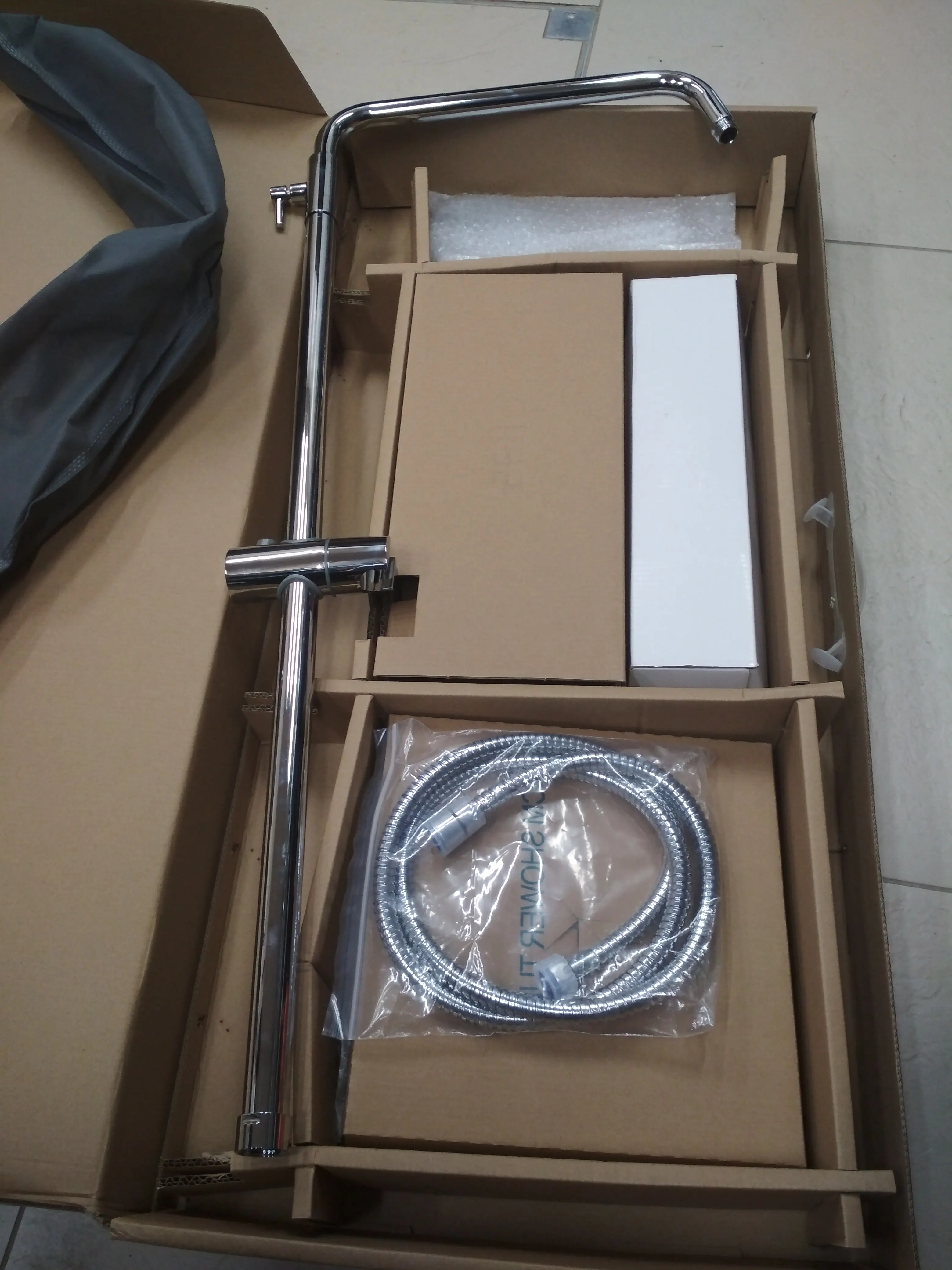 Душевая стойка очень качественная, материал добротный, что трубка на душ толстенная, сам смеситель тоже очень тяжелый,все такое аккуратное, упаковано очень хорошо