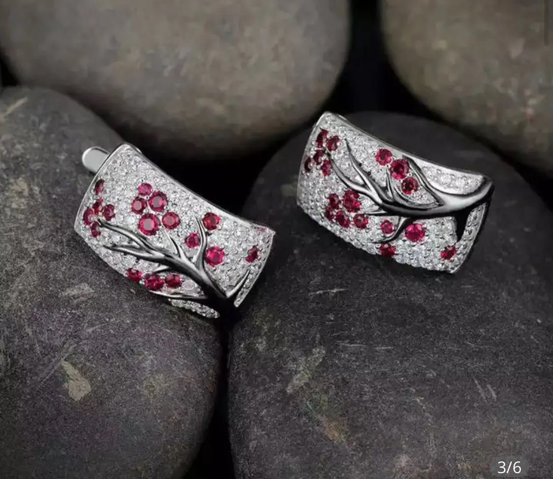 Модный серебряный цвет дерево Циркон Ювелирные наборы для женщин сверкающие красные серьги и кольцо свадебный комплект индийские ювелирные изделия для вечеринок