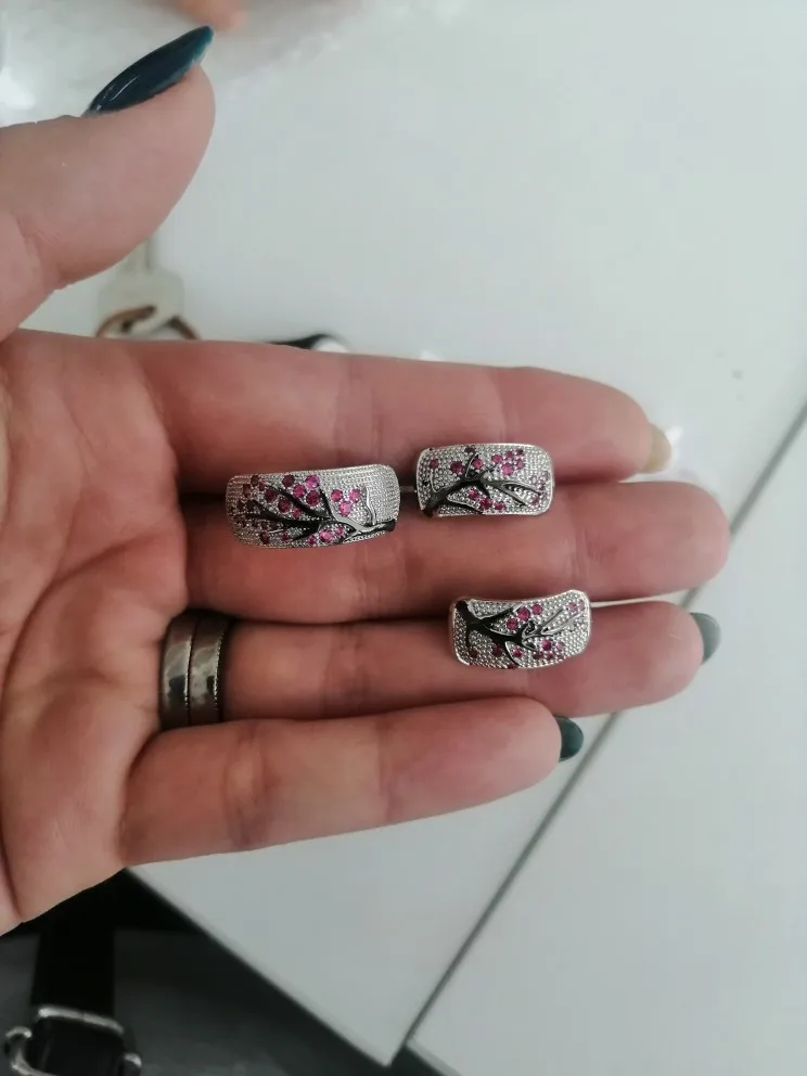 Товар прибыл по сроку, спасибо. Продавец все упаковал в коробку. Набор очень красивый, стоит на серёжках 925 проба,