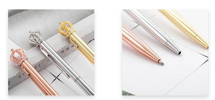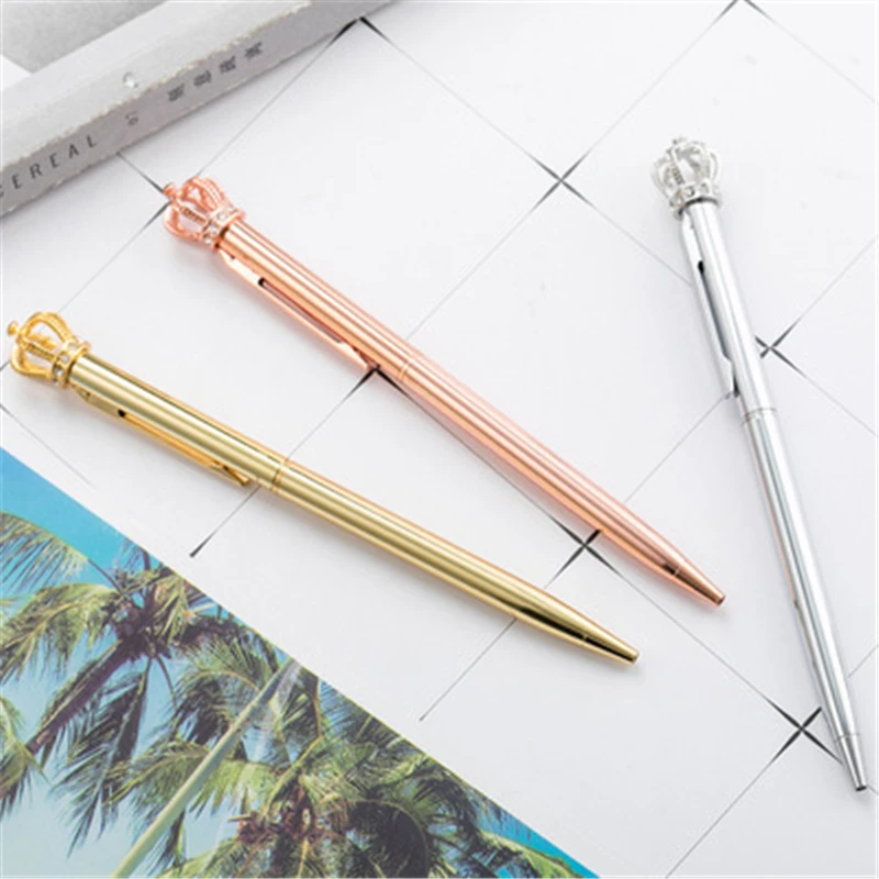 Роскошная металлическая шариковая ручка в форме короны, офисная прочная 1,0 мм шариковая ручка, милые школьные принадлежности, подарочная ручка