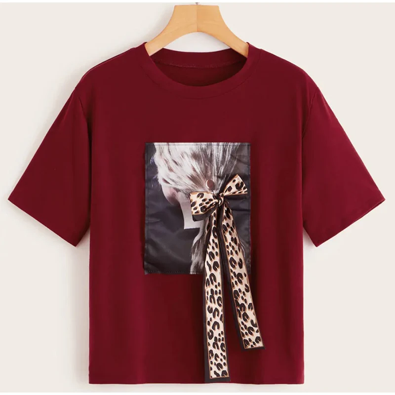 Футболка женская с коротким рукавом и цветочной аппликацией, Свободный Повседневный Топ с круглым вырезом и бантом, милая одежда в стиле Харадзюку, лето 2021