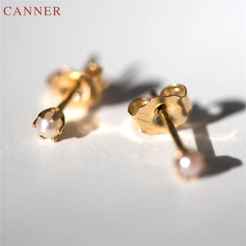 Женские маленькие серьги-гвоздики CANNER из серебра 2021 пробы с нежным жемчугом, 925