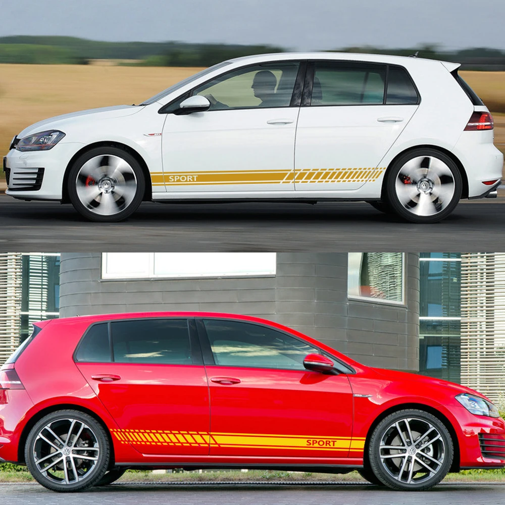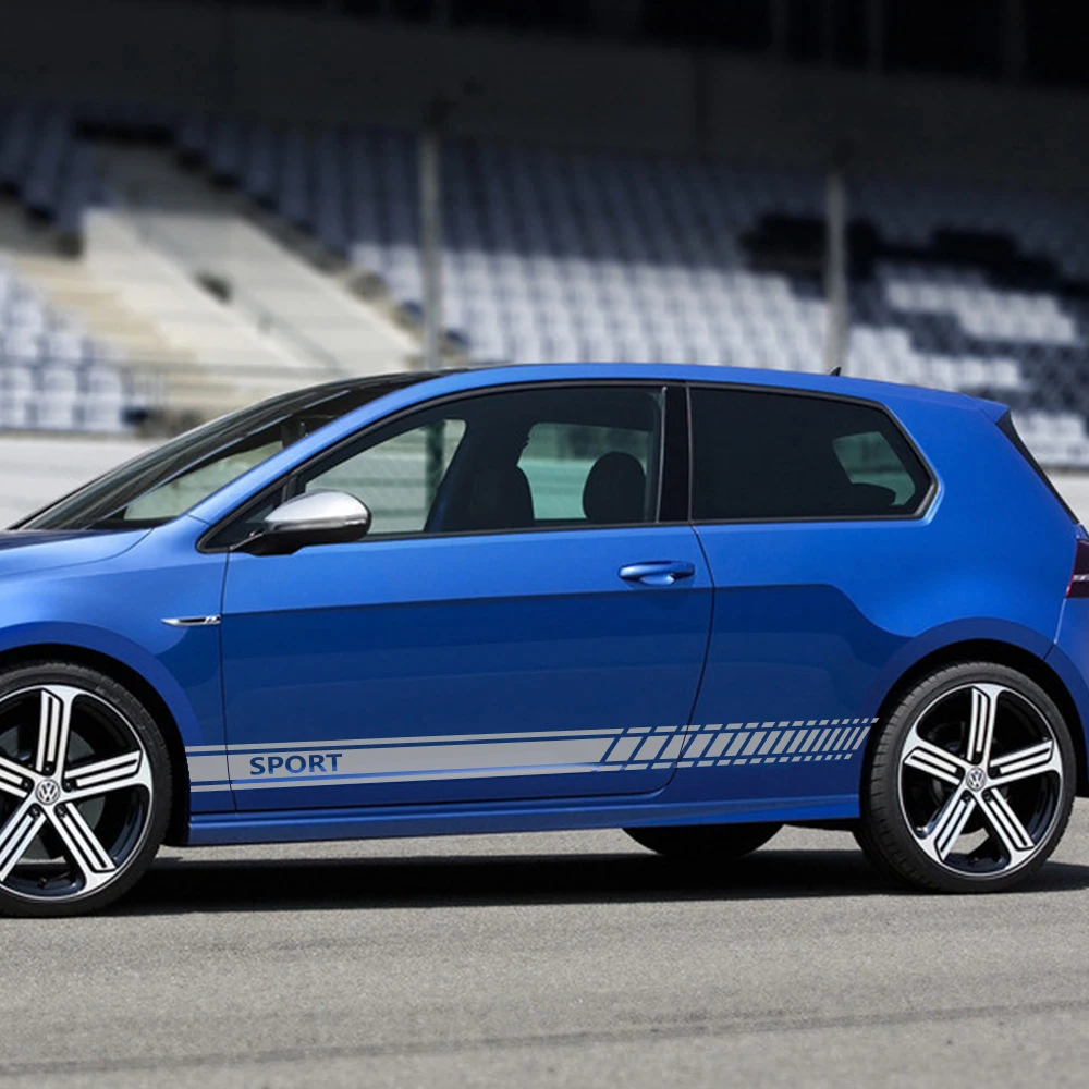 2 шт., автомобильная наклейка на дверь, боковая юбка, виниловая пленка, авто Спорт, гонки, полосы, наклейки для Volkswagen GOLF 4 5 6 7, тюнинг, автомобильные аксессуары