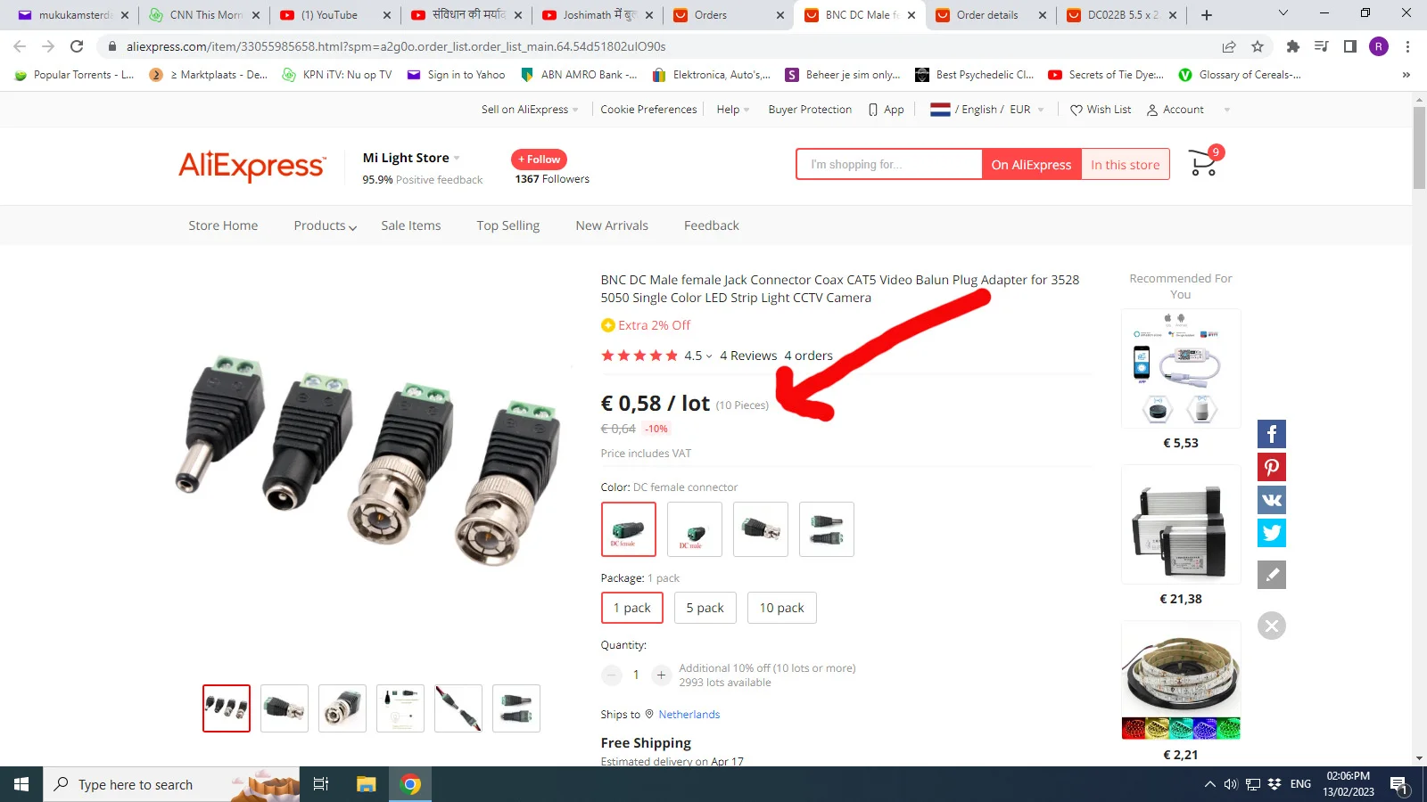 Страна: DE Color: DC female connector Package: 5 pack Доставка: Cainiao Super Economy Global 29.11.2022