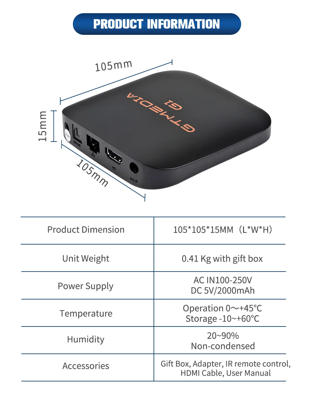 GTMEDIA G1 Android ТВ коробка GTmedia Android 7,1 Смарт ТВ коробка 1 ГБ 8 ГБ S905W 4 ядра 2,4 ГГц Wi-Fi, Декодер каналов кабельного телевидения PK X96 мини