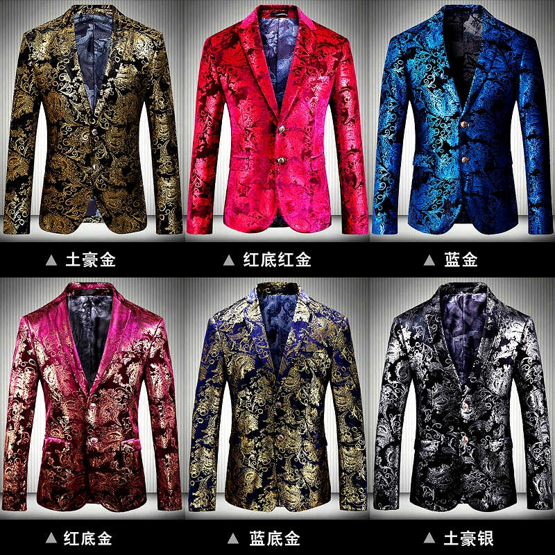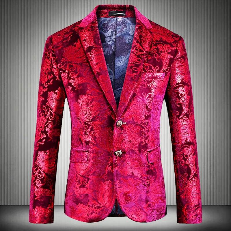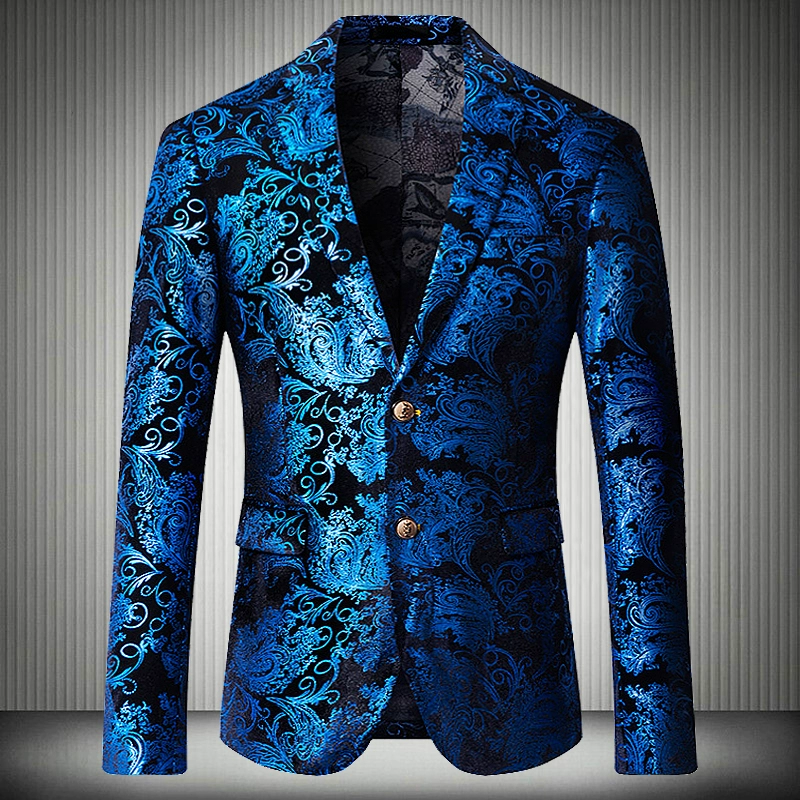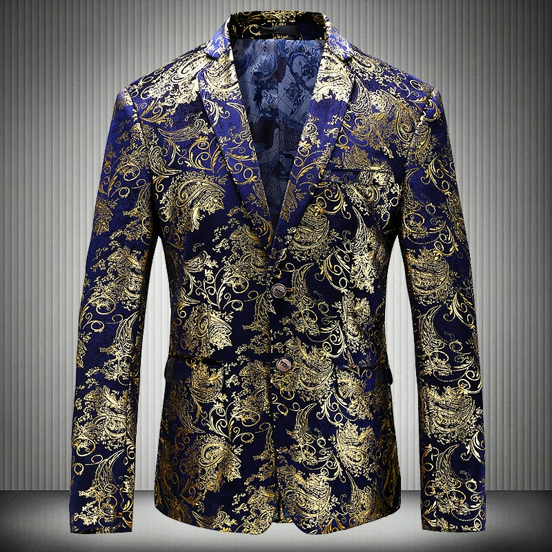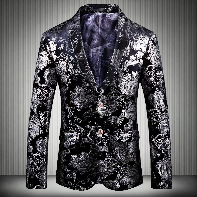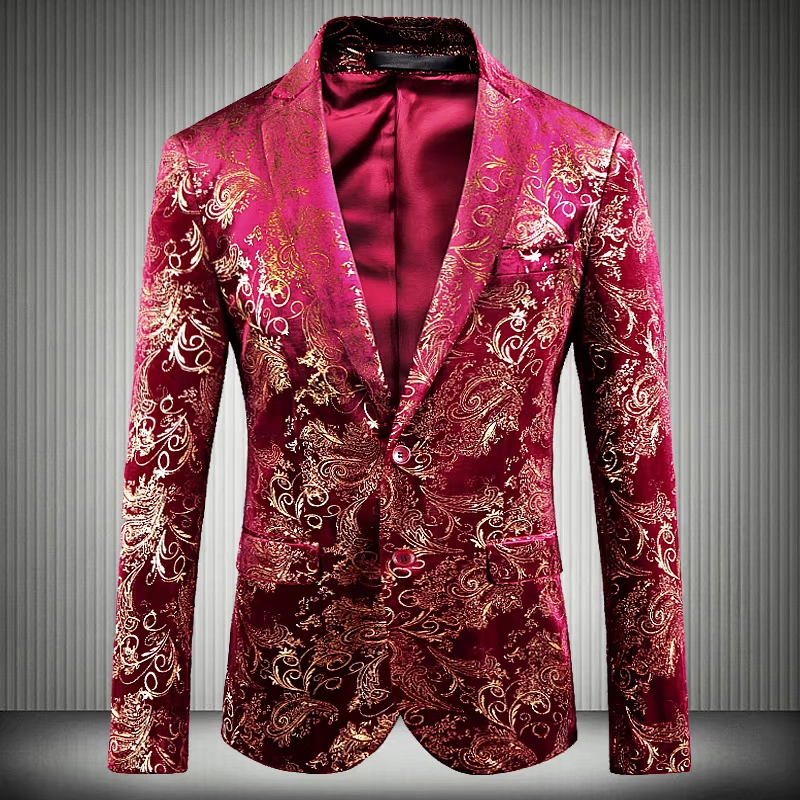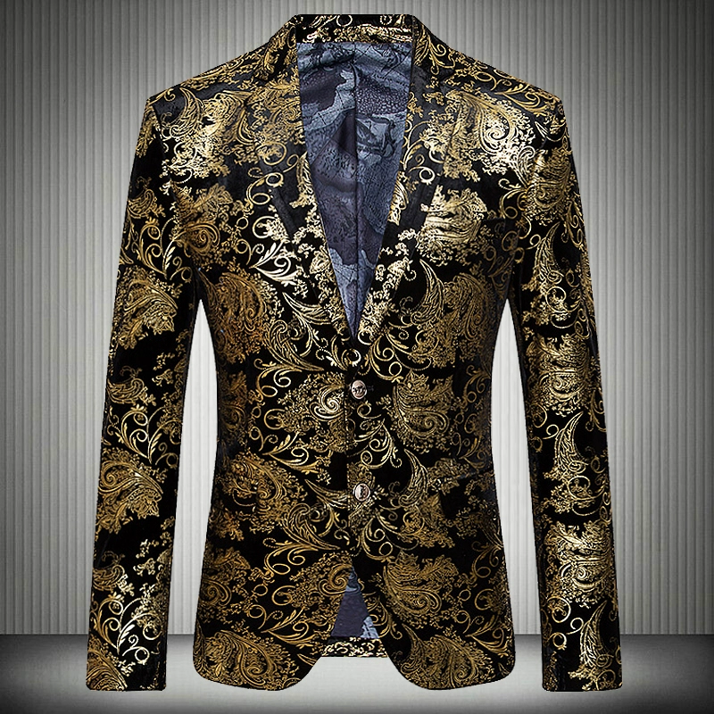 Мужской пиджак из золотого вельвета, деловой дизайнерский блейзер с цветочным принтом, банкетный блейзер для выпускного вечера, 2019