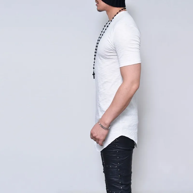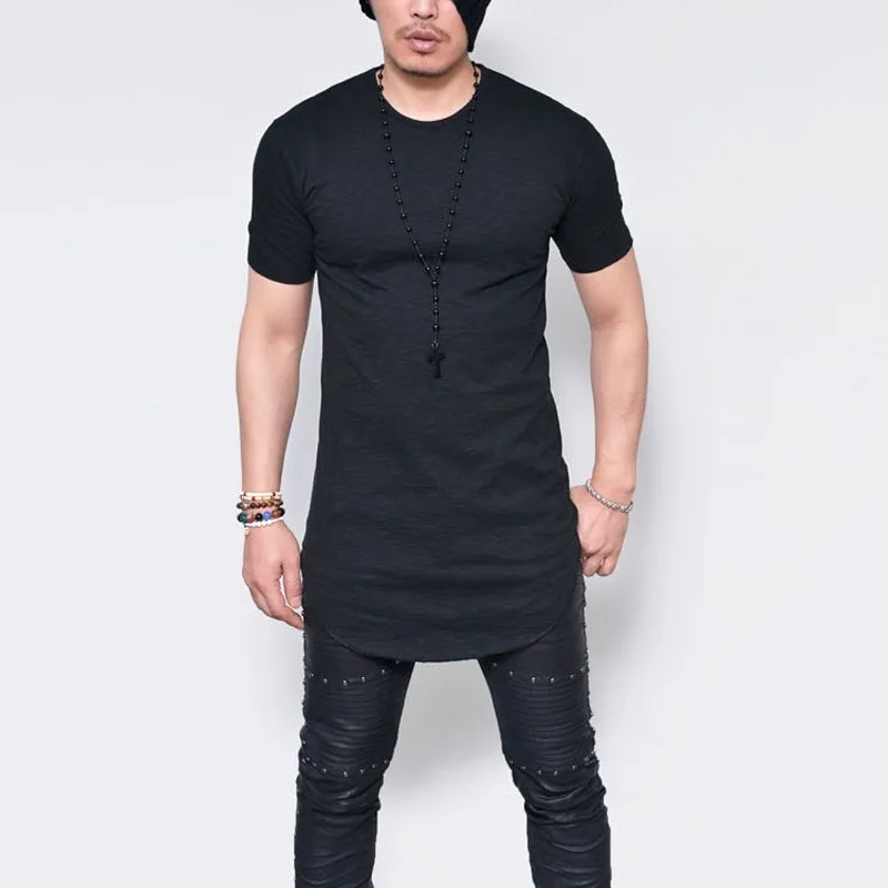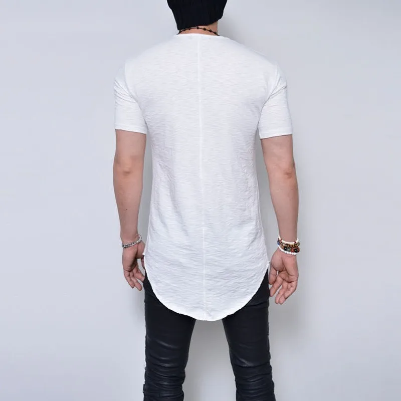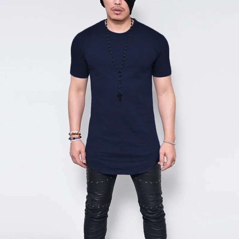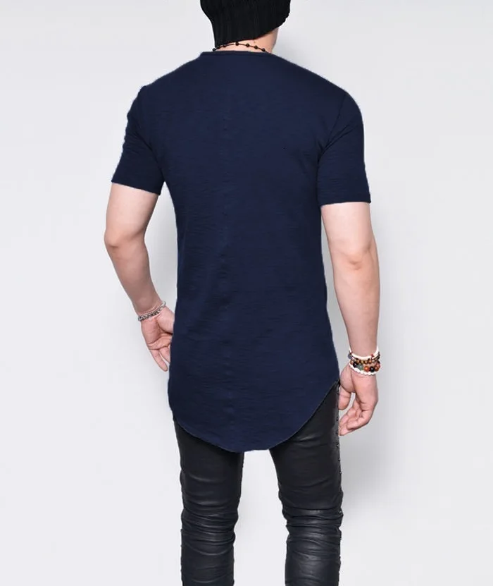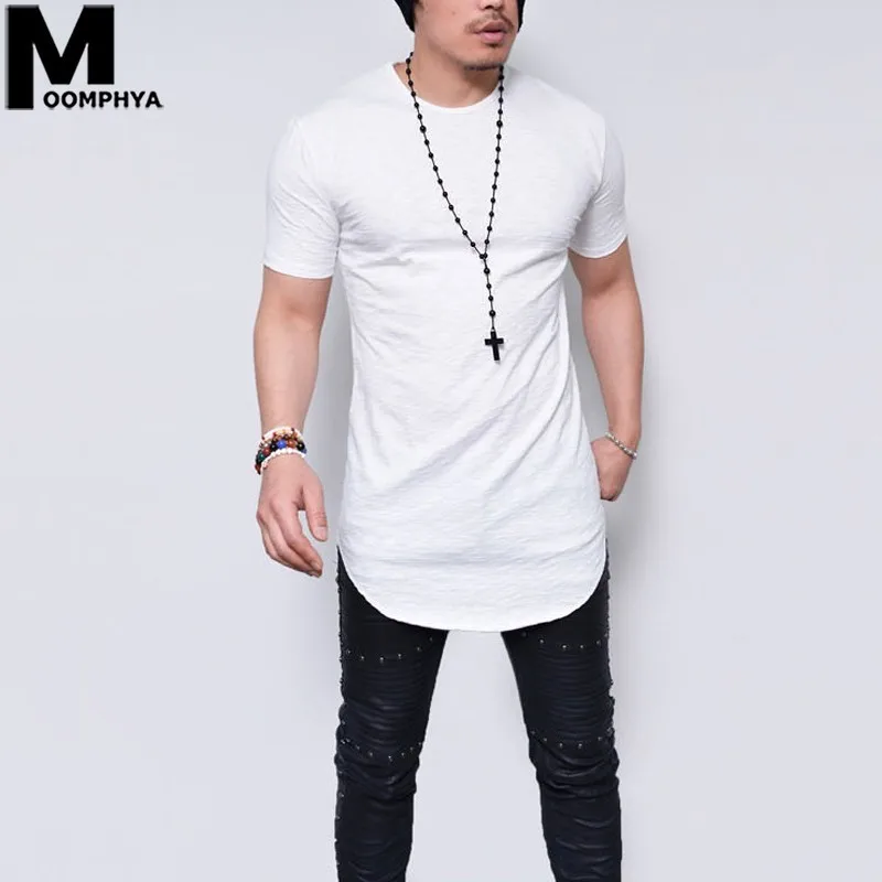 Moomphya удлиненная Мужская футболка с коротким рукавом и загнутым подолом, повседневная эластичная мягкая Однотонная футболка, мужские топы, футболки размера плюс, S-5XL