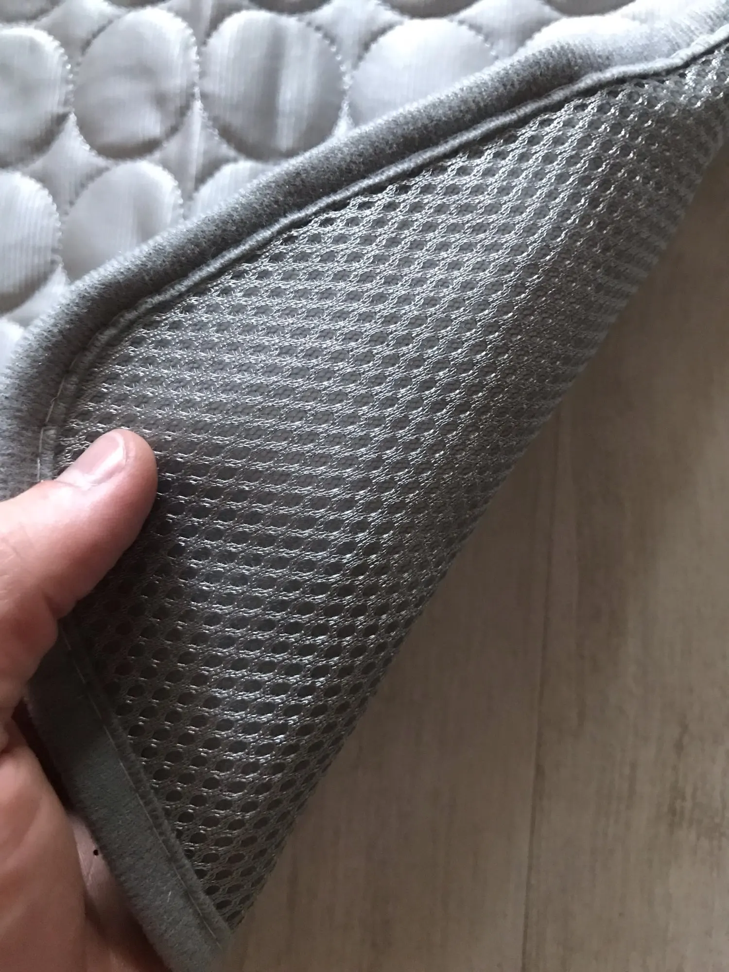 Эффекта охлаждения нет, но псы валяются на лежанке с удовольствием. Судя по материалу, будет не сложно стирать. Единственный минус - снизу сетка, поэтому скользит на плиточном полу