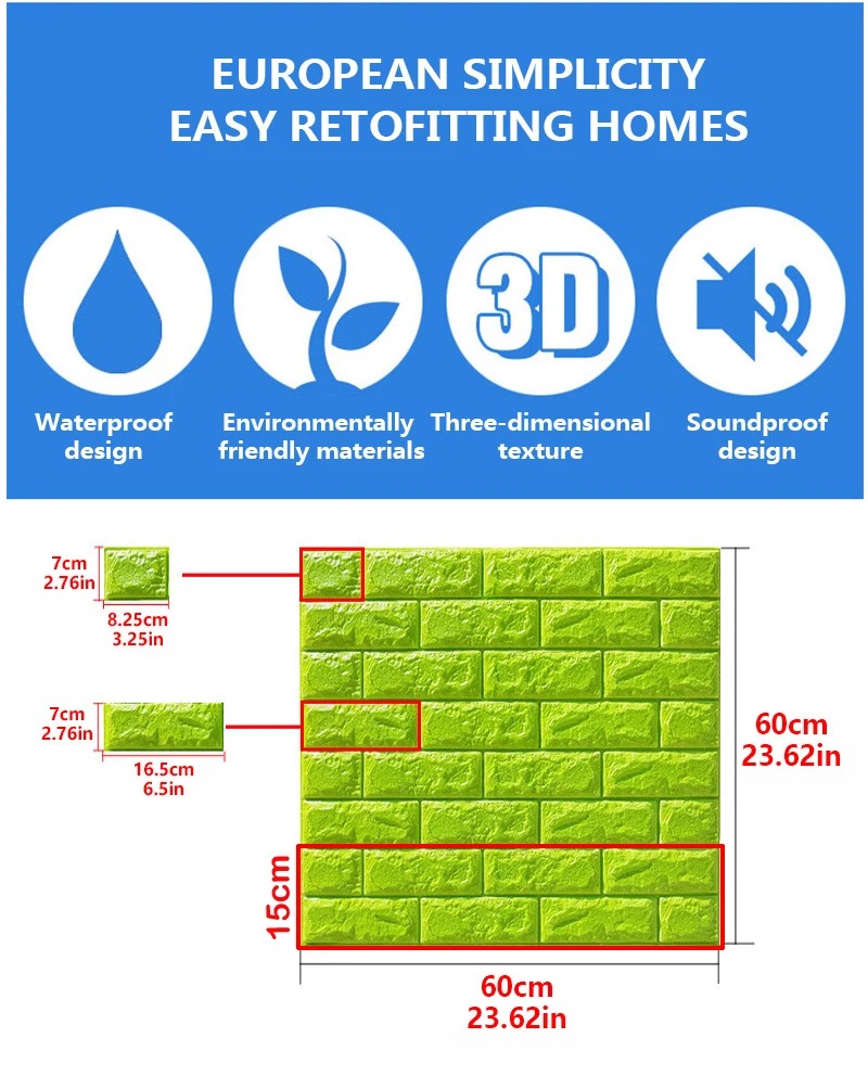 Материал:Водонепроницаемые стикеры на стену из пенополиуретана с рисунком кирпича