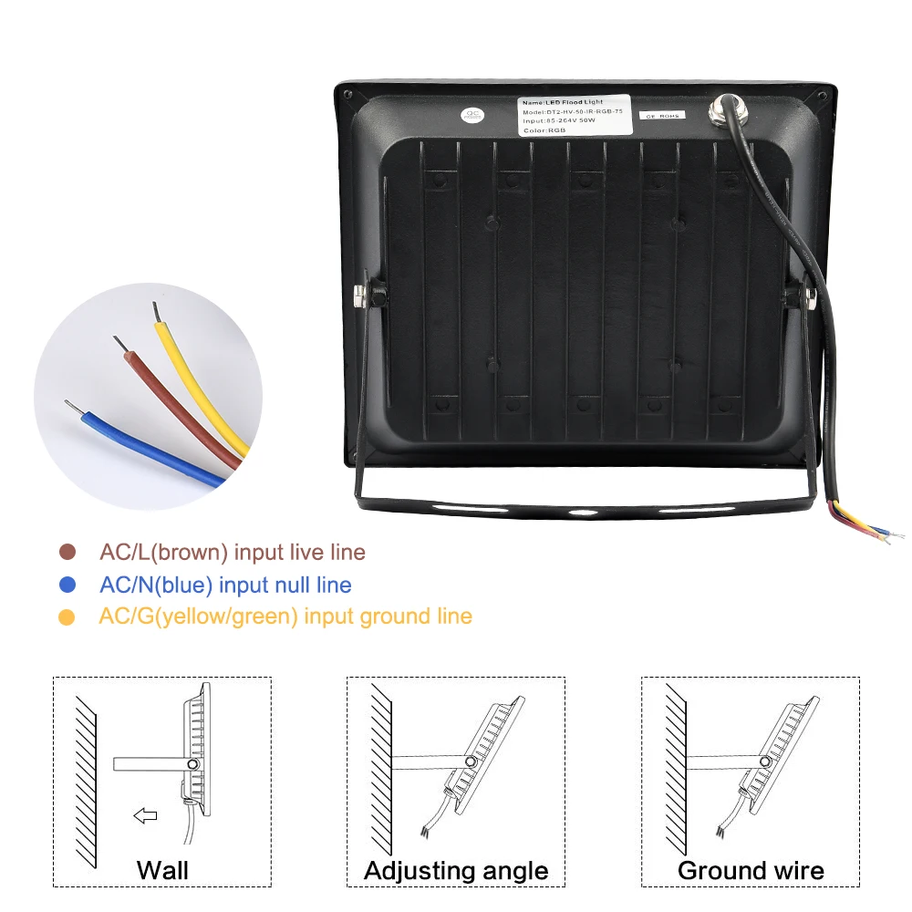Примечание: Когда вы выбираете один цвет, вы получите прожектор без пульта дистанционного управления, когда вы выбираете «rgb', вы получите прожектор с пультом дистанционного управления.