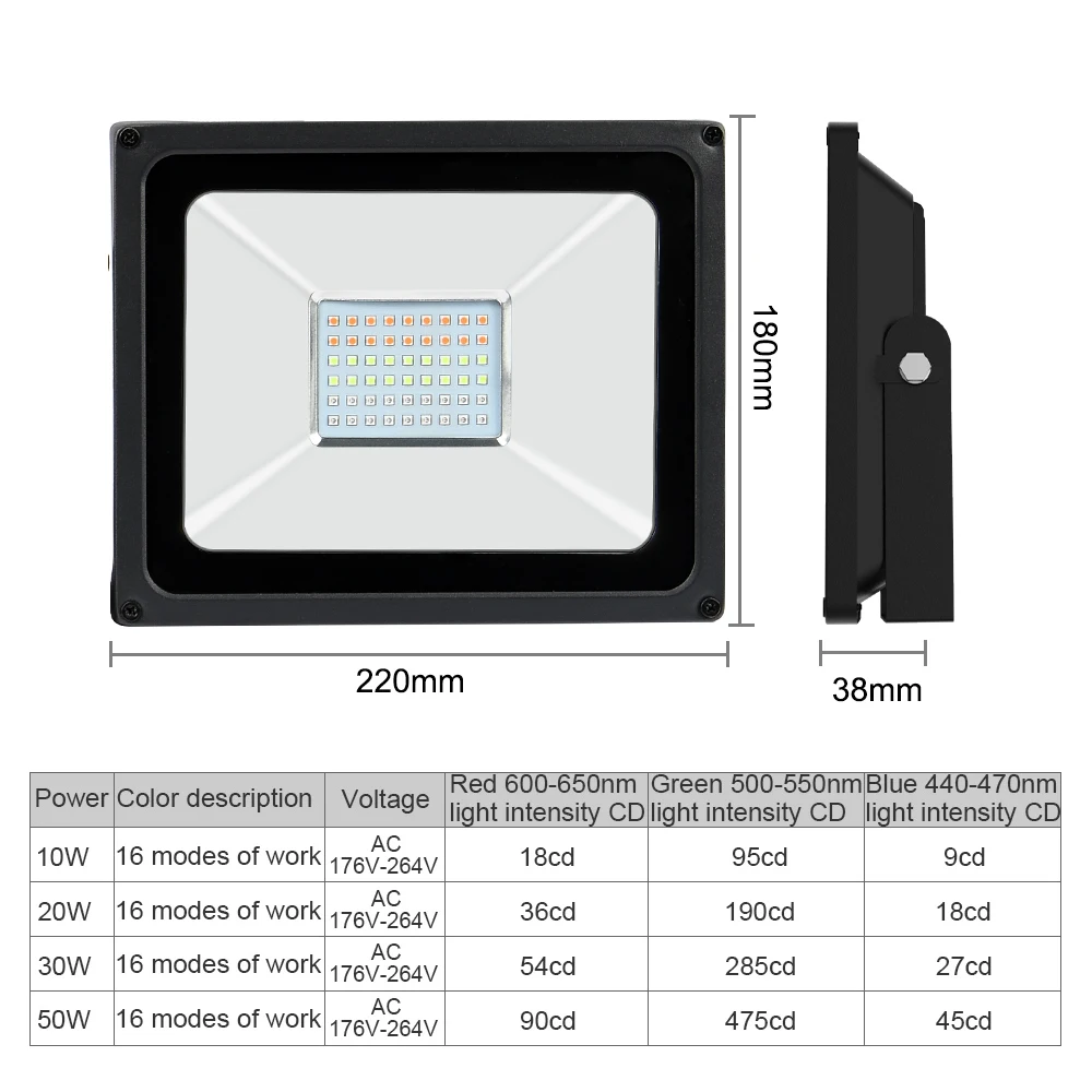 10 Вт 20 Вт 30 Вт 50 Вт RGB светодиодный светильник для наводнения изменяющий цвет светодиодный водонепроницаемый наружный Точечный светильник 220 В Лампа для проектора