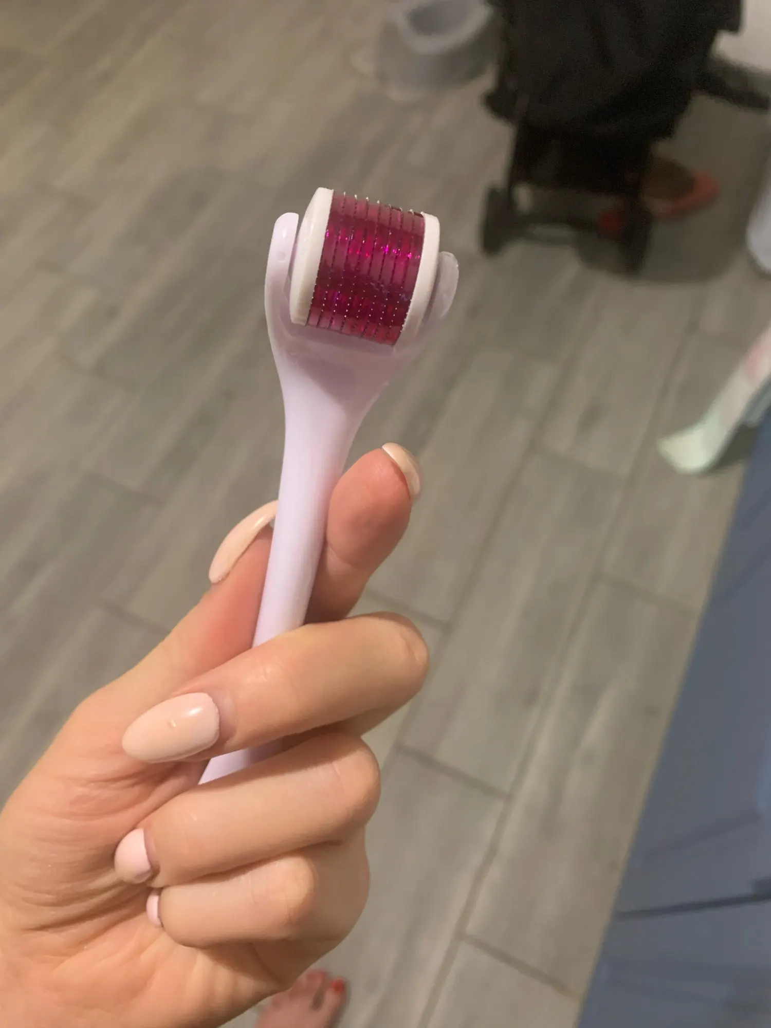 хорошая штука,после прохождения роликом наблюдается слабое покраснение, наносим сыворотка и она моментально впитывается, эффект виден через 2-3применения