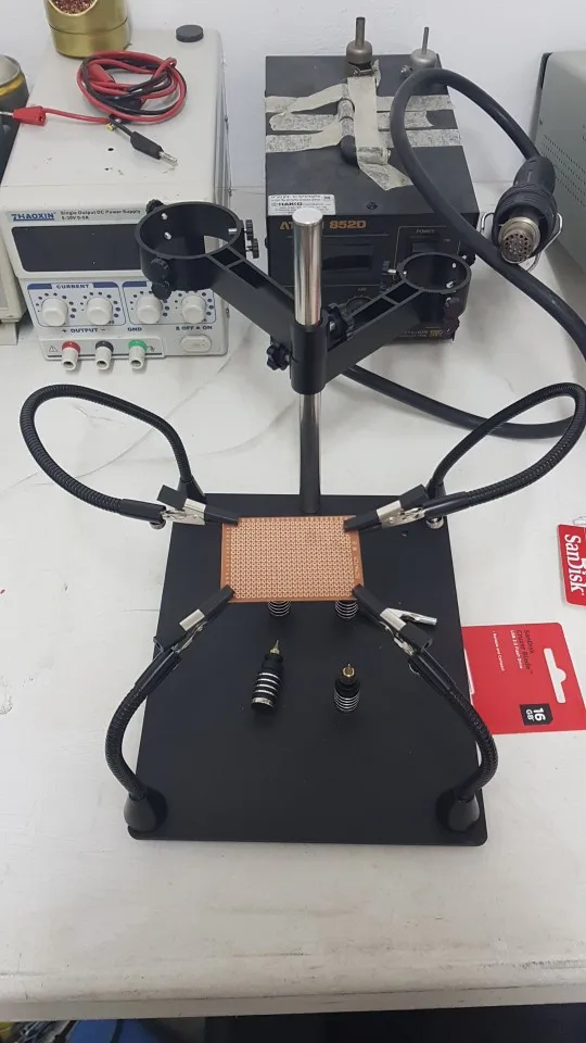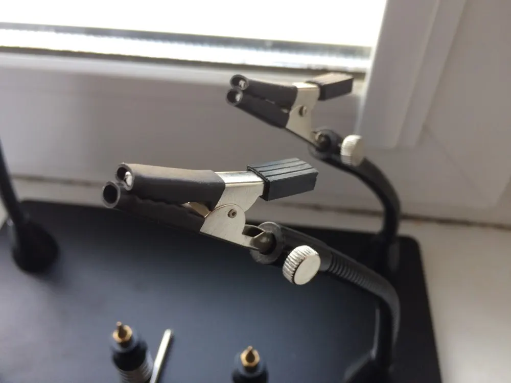 Держатель понравился. Всё как в описании. Магниты хорошие. В целом подставка расширяет удобство пайки. Для плат - вообще огонь, особенно, если используется нижний подогрев. Есть запасной крокодил и болт-фиксатор. Всем доволен.