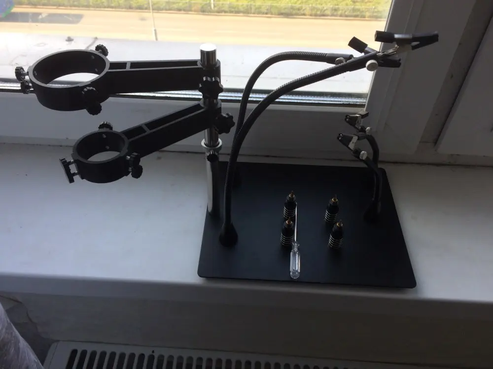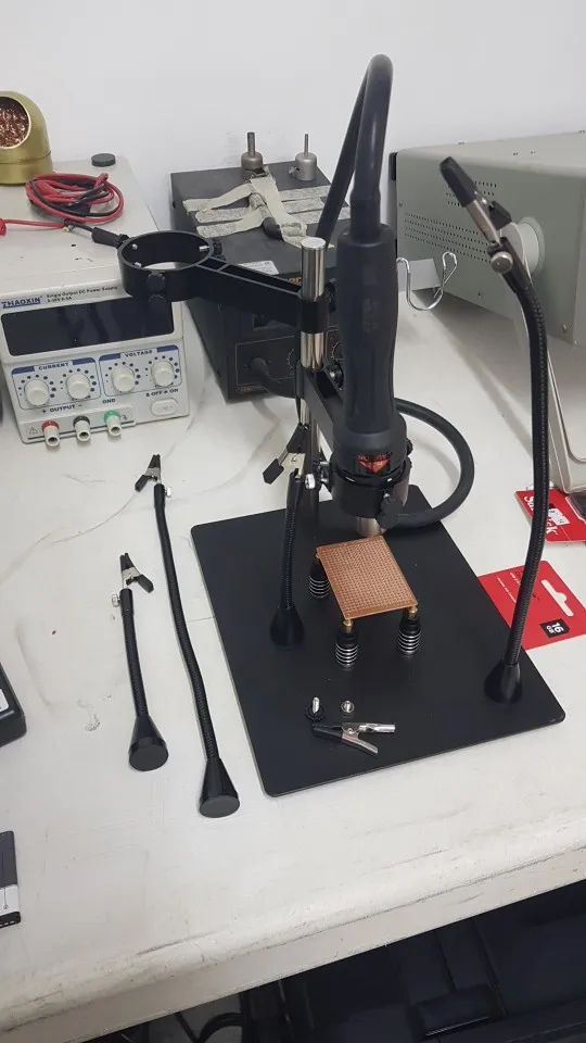 Отличная вещь! Пользоваться очень удобно. Стойка с круглыми зажимми позволяет подвесить паяльный фен строго над нужной микросхемой, чтобы выпаять ее. Я думаю, если приноровиться, можно паять даже bga-процессоры:) Единственное нарекание - винт, которым крепится к основанию цилиндрическая хромированная стойка, постоянно открычивается. Думаю попробовать поставить его на фиксатор резьбы или подложить под стойку тонкую резиновую шайбу. Могу смело рекомендовать и товар, и продавца! Продавец очень адекватный, постоянно на связи.