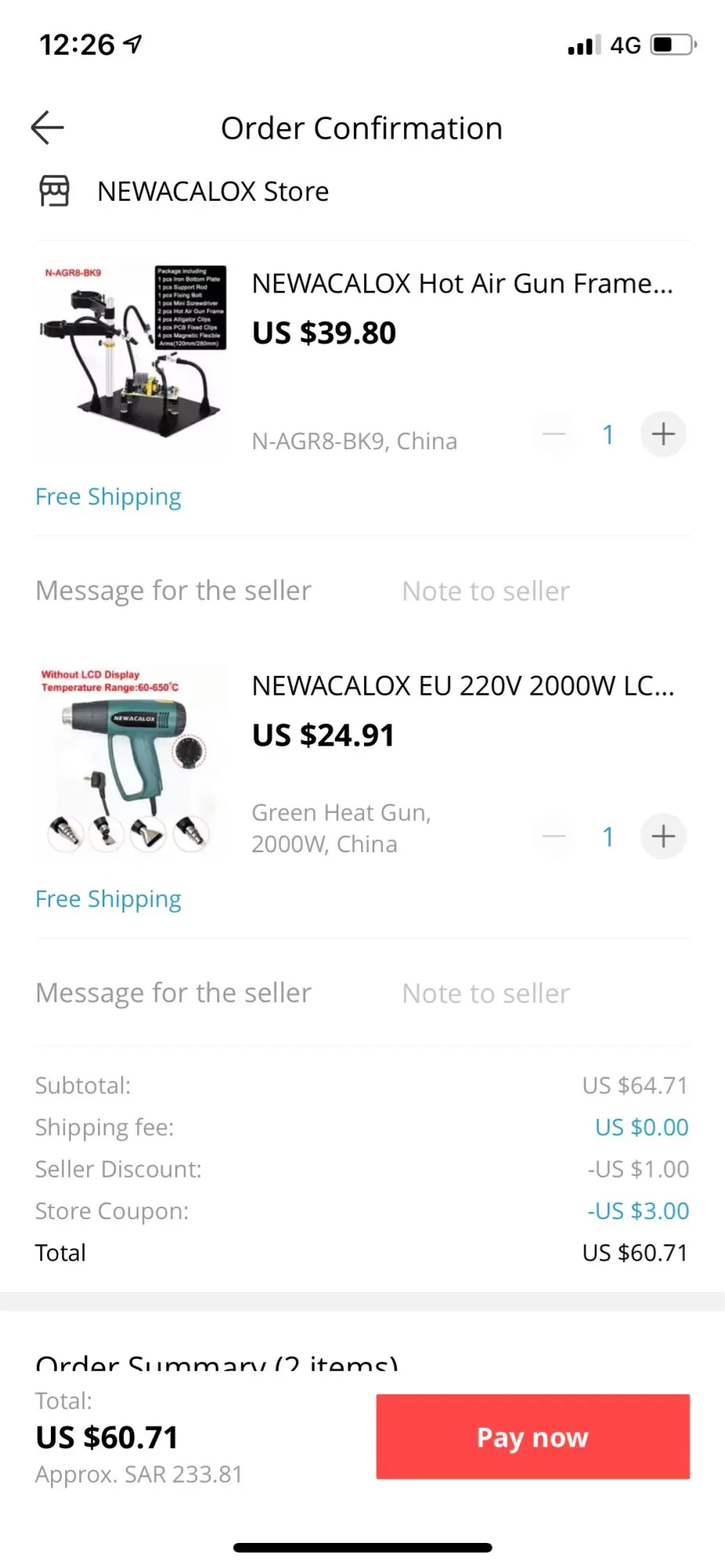 Я купил тепловой пистолет с подставкой, но удерживающий тепло винт не совместим с аппаратом. Он прибыл быстрее (даже если он был пандемии в течение 1 недели и налог не был получен), но хорошо в точке магнита.