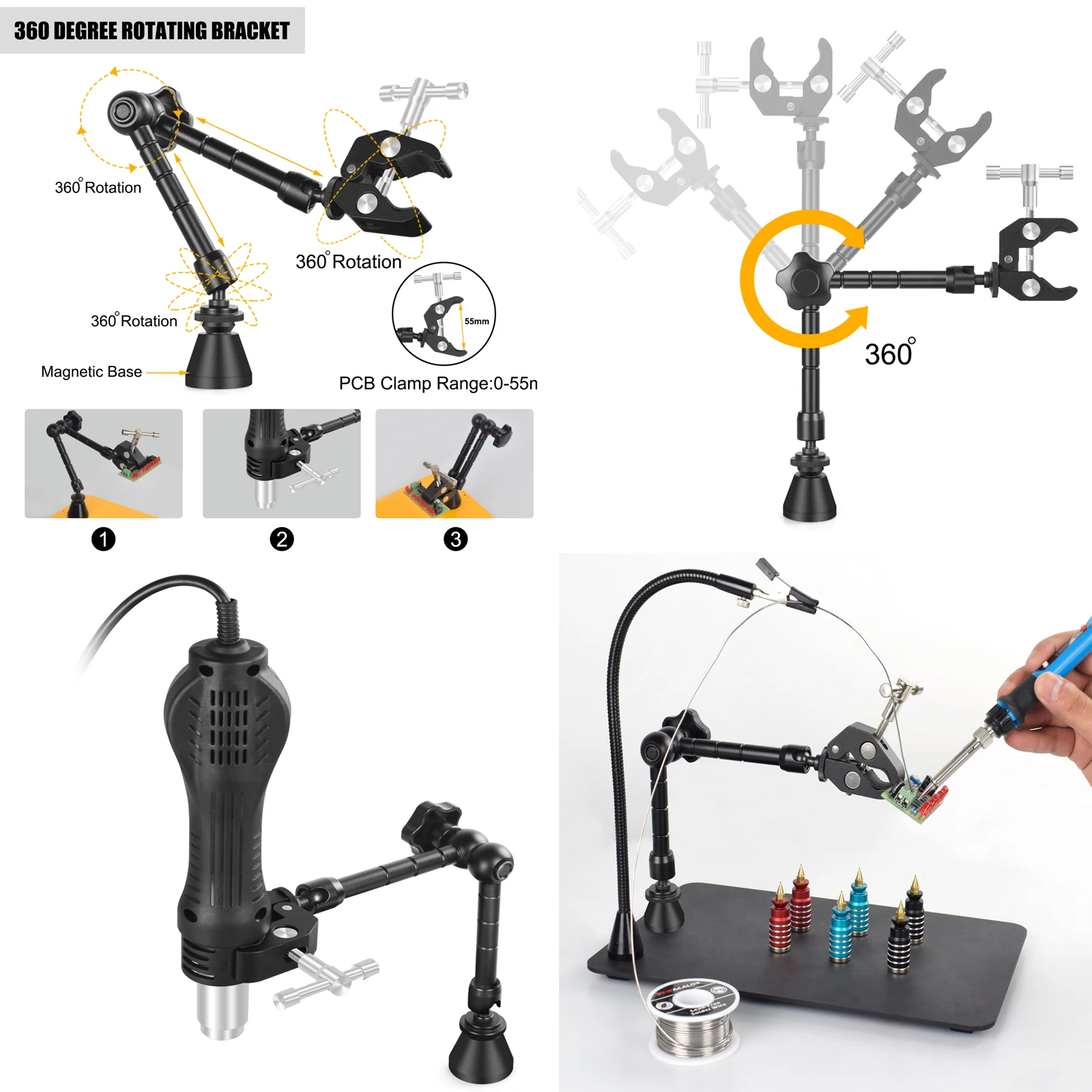 Держатель для паяльника NEWACALOX, подставка с зажимом для печатной платы, с лупой 3X светодиодный
