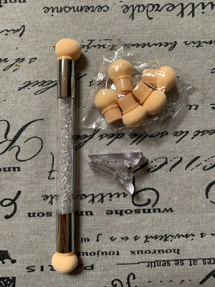 Двусторонняя кисть для градиентного затенения, 1 шт., для нанесения точек, губка, головка для стразы, ручка, кисть для дизайна ногтей, инструмент для рисования ногтей