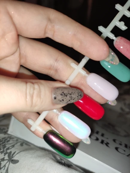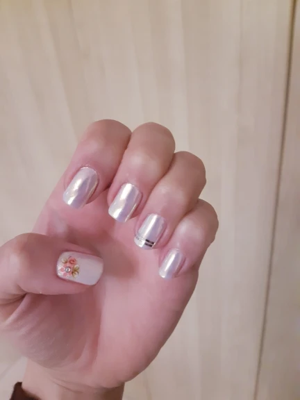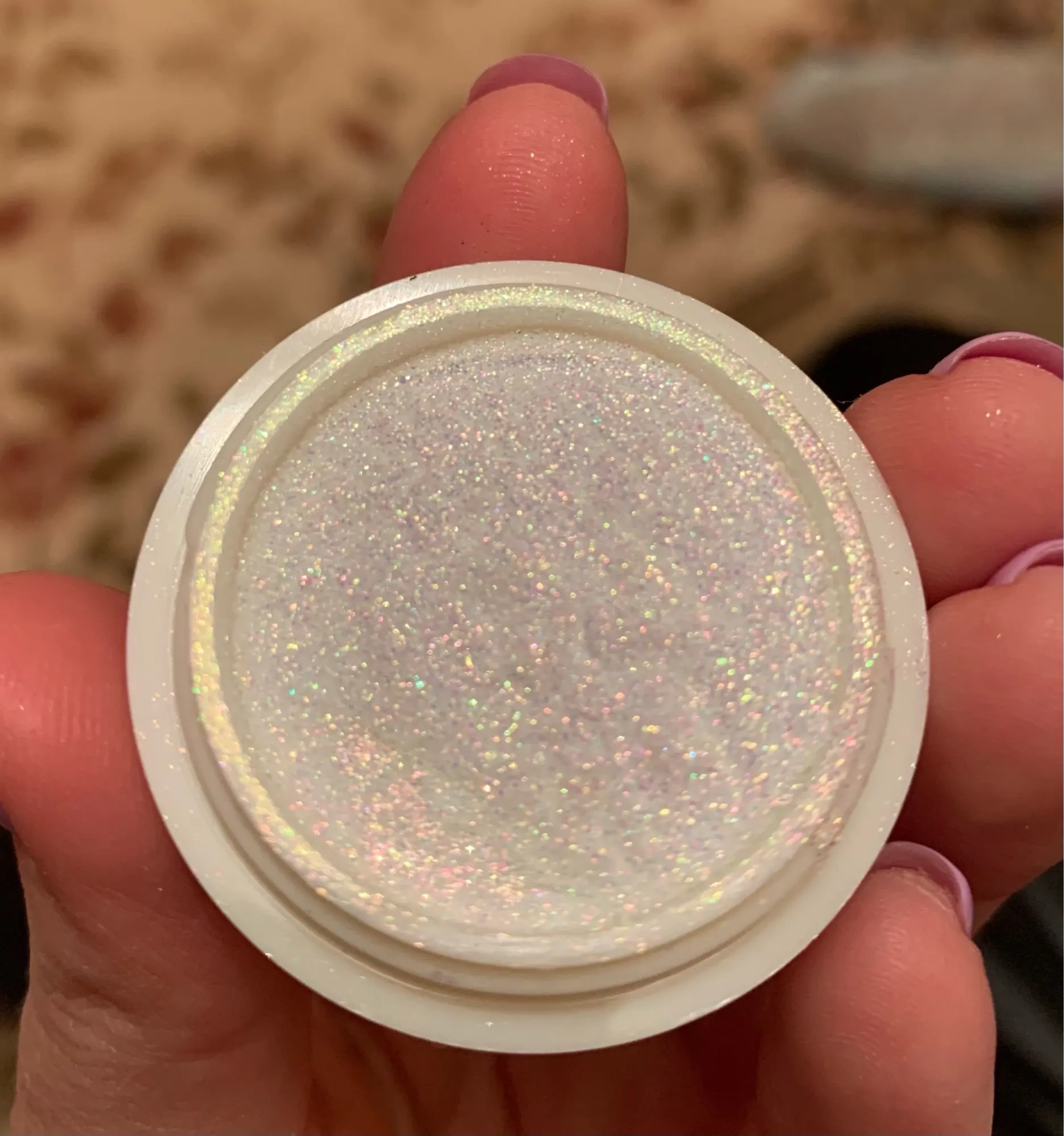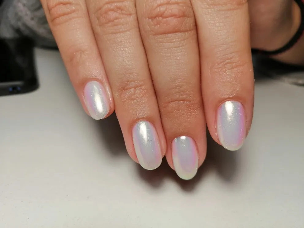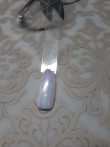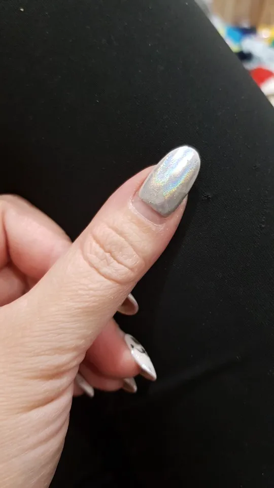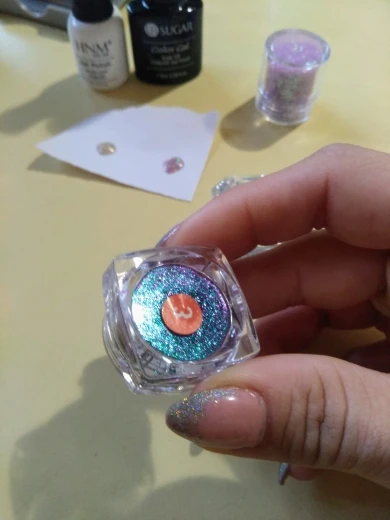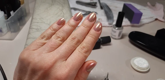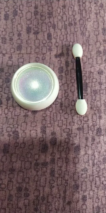 Пришла в течении двух месяцев. Красивая втирка. В коробочке насыпано совсем мало. Расходуется экономно. На темных лаках даёт металлический эффект. ( последнее фото). Отливает розовым и зеленым. Буду заказывать ещё.