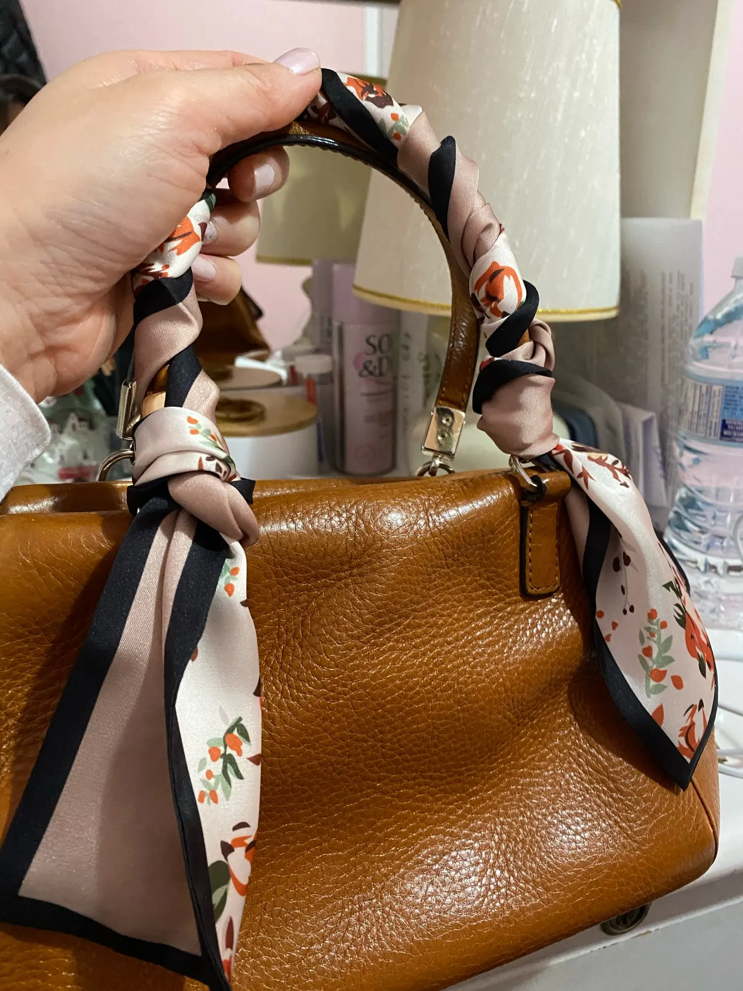 Шарф женский Шелковый с цветочным принтом, 100*9 см, с лентой и маленькой ручкой, женские шарфы