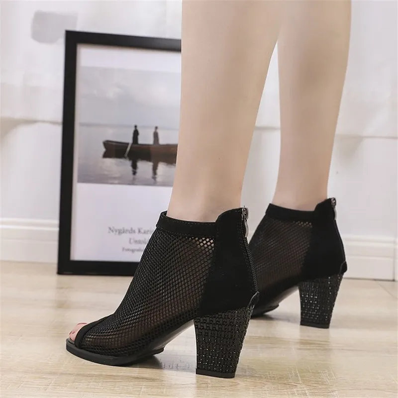 Босоножки женские на высоком квадратном каблуке, дышащая сетчатая о...