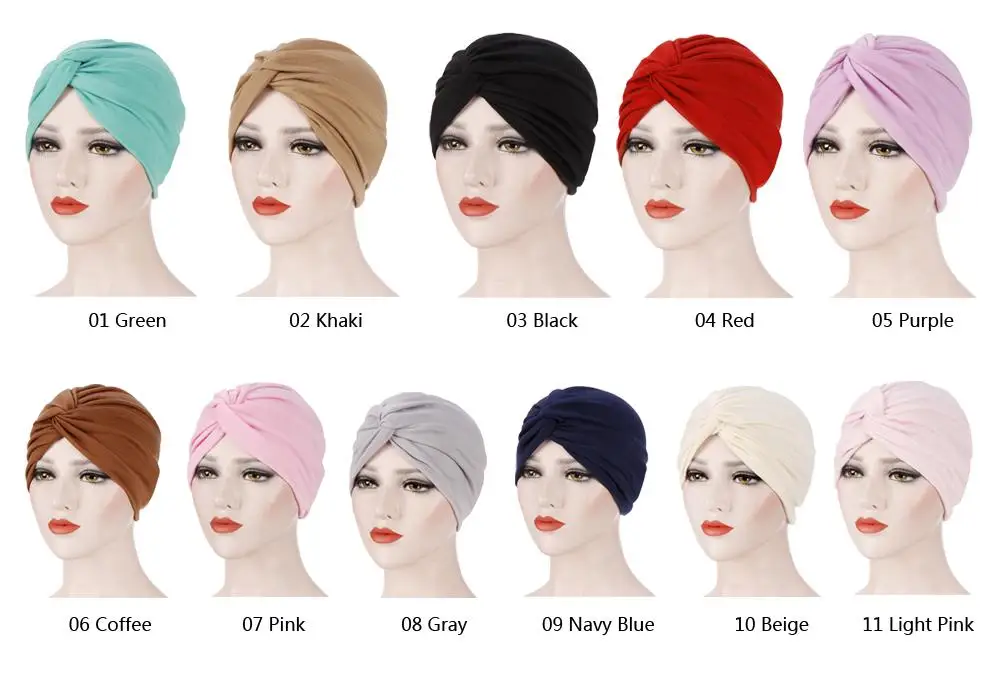 Мусульманская женская кепка Chemo тюрбан шляпа для выпадения волос головной убор накидка на голову индийская шляпа плиссированные исламские шапочки Skullies Fashion