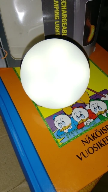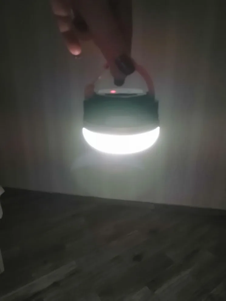 Милая и практичная маленькая лампа. Протестировано и хорошо работает. Хорошее качество, рекомендуется. Guite bright (он имеет три режима: яркий, немного тусклый и «Дискотека») и легко осветит нормальную палатку.