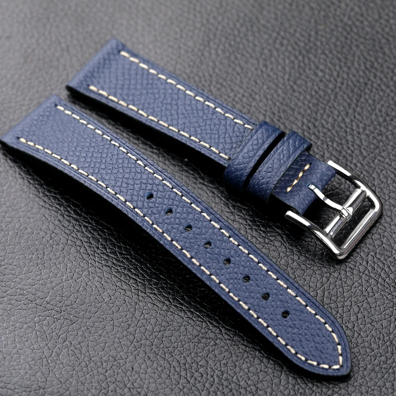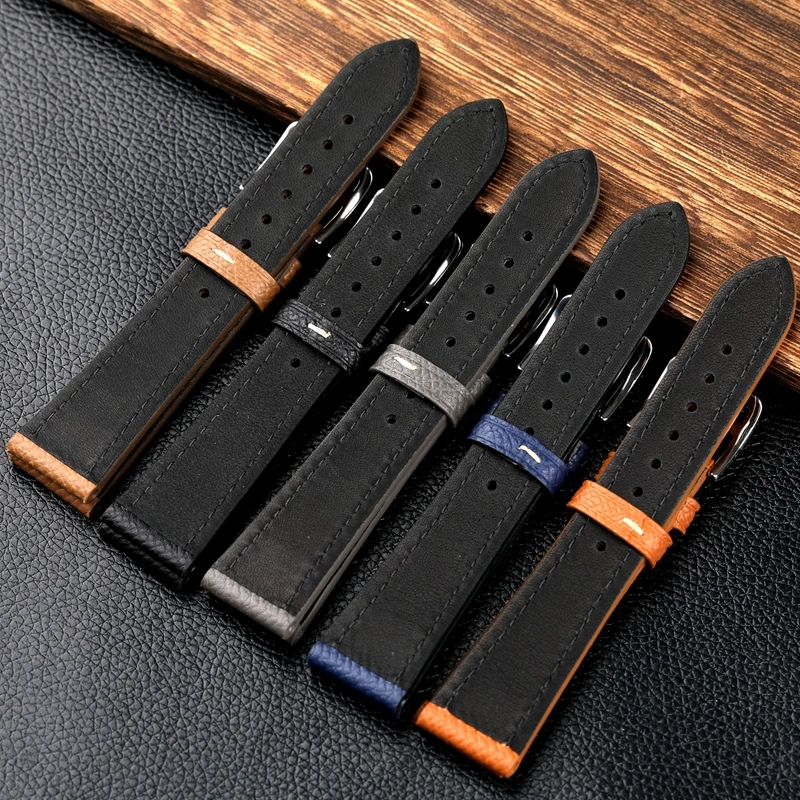 Ремешок ручной работы для наручных часов, кожаный браслет с H-образной пряжкой, Черный Синий Серый, 18 19 20 21 22 24 мм, аксессуары для мужских часов